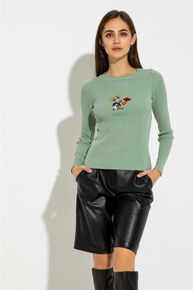 Лонгслив с вышитым принтом Суперкрошки (Powerpuff Girls). Лонгслив женский – это незаменимое изделие для поклонниц стиля кэжуал, которое остается на волне популярности долгое время и не собирается сдавать позиции.