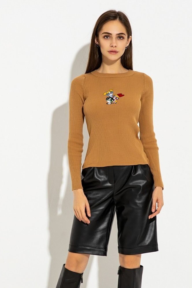 Лонгслив с вышитым принтом Суперкрошки (Powerpuff Girls). Лонгслив женский – это незаменимое изделие для поклонниц стиля кэжуал, которое остается на волне популярности долгое время и не собирается сдавать позиции.