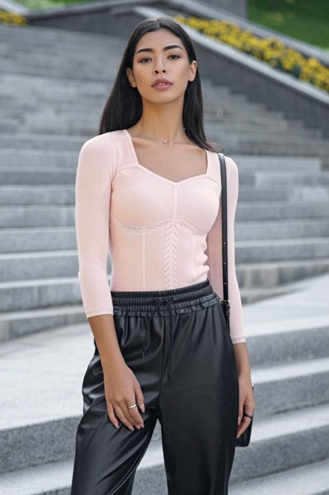 Трикотажный лонгслив с рукавом 3/4 и глубоким декольте. Изюминкой модели являются линии подчеркивающие достоинства фигуры. Лонгслив - это универсальный предмет гардероба, который можно носить круглыми сутками в течении всего года. Произведено в Турции.