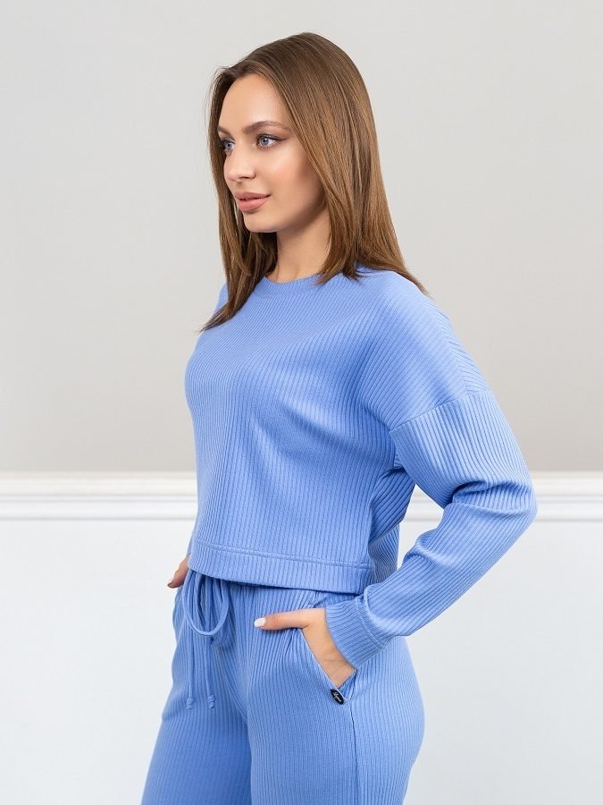 Легкий укороченный лонгслив свободного кроя со спущенной линией плеча. Оформлен пришивным декоративным элементом на полочке с наименованием бренда.