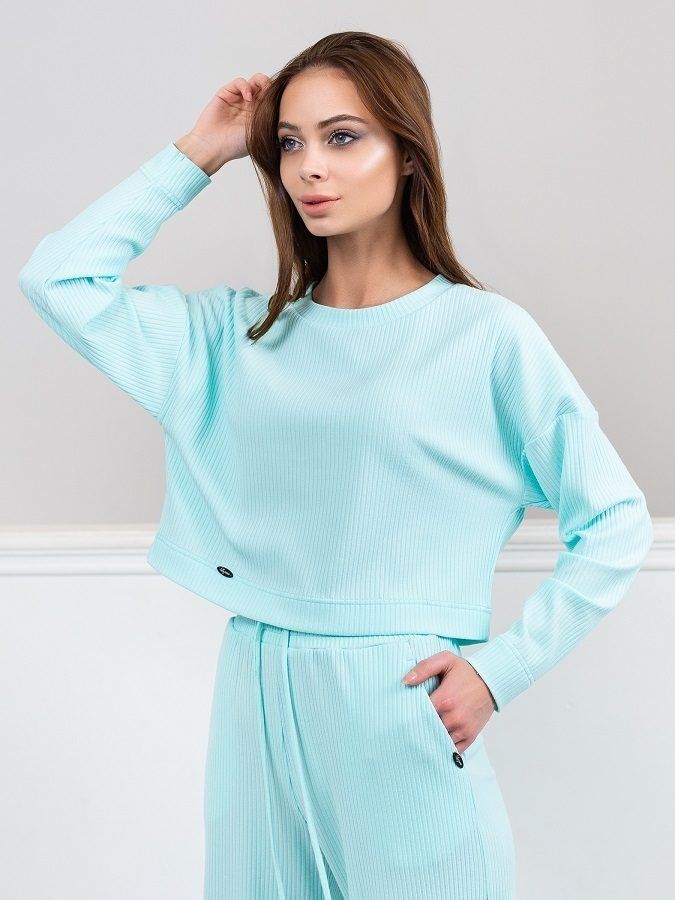 Легкий укороченный лонгслив свободного кроя со спущенной линией плеча. Оформлен пришивным декоративным элементом на полочке с наименованием бренда.