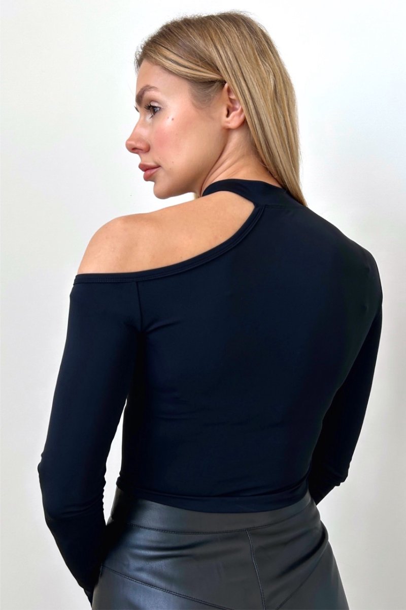 Лонгслив из эластичного трикотажа бифлекс с открытым плечом – стильный и элегантный выбор для любого случая.