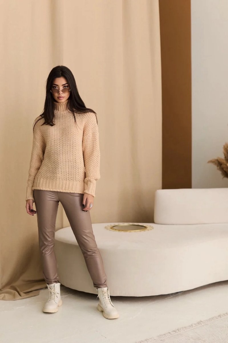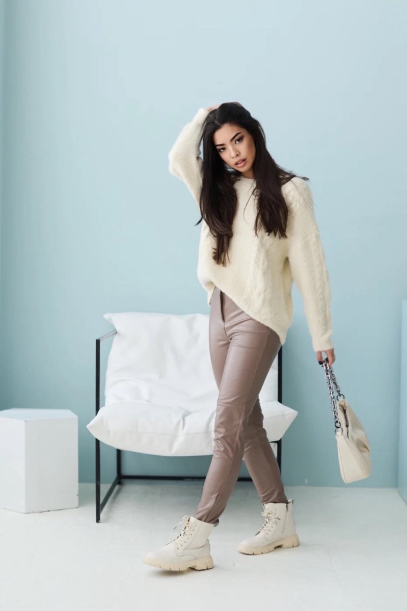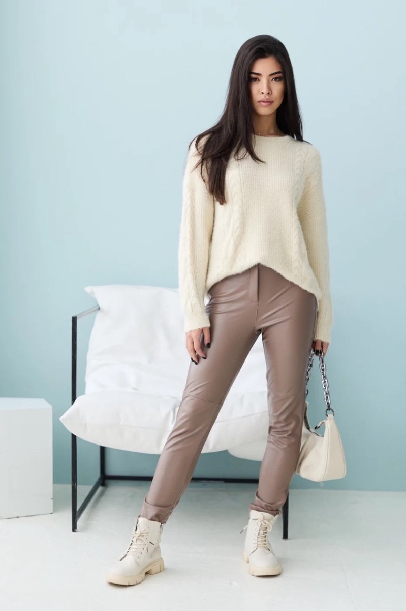 Отличной заменой джинсам на осень будут лосины из эко-кожи на флисе. Лаконичный дизайн и приятный цвет подойдут к любому образу. Талия завышенная. Застегивается на потайную молнию и кнопку. Присутствует имитация карманов.