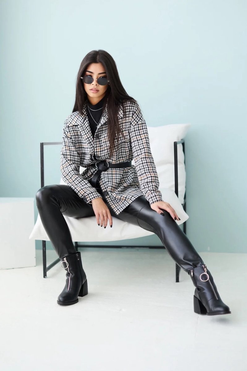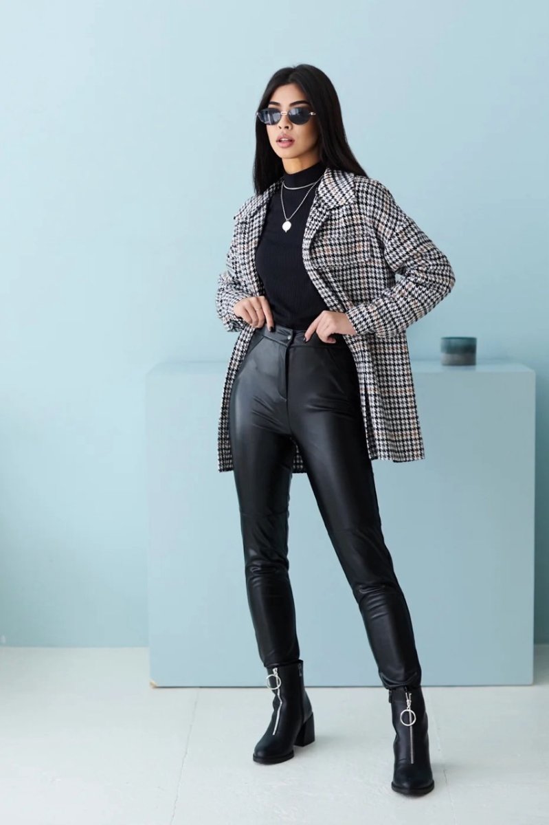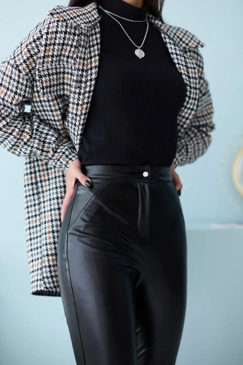 Отличной заменой джинсам на осень будут лосины из эко-кожи на флисе. Лаконичный дизайн и приятный цвет подойдут к любому образу. Талия завышенная. Застегивается на потайную молнию и кнопку. Присутствует имитация карманов.