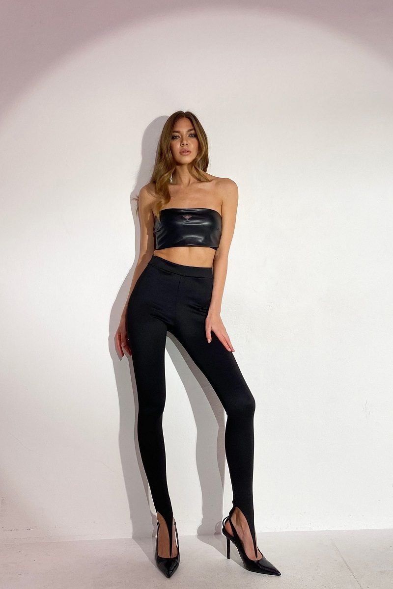 Универсальные лосины черного цвета, станут отличным вариантом для холодной зимы. Их легко можно комбинировать с любым образом. Оригинальности изделию придают фигурные штрипки, которые смотрятся очень стильно и необычно. Отличный вариант для повседневности и праздничного образа.
