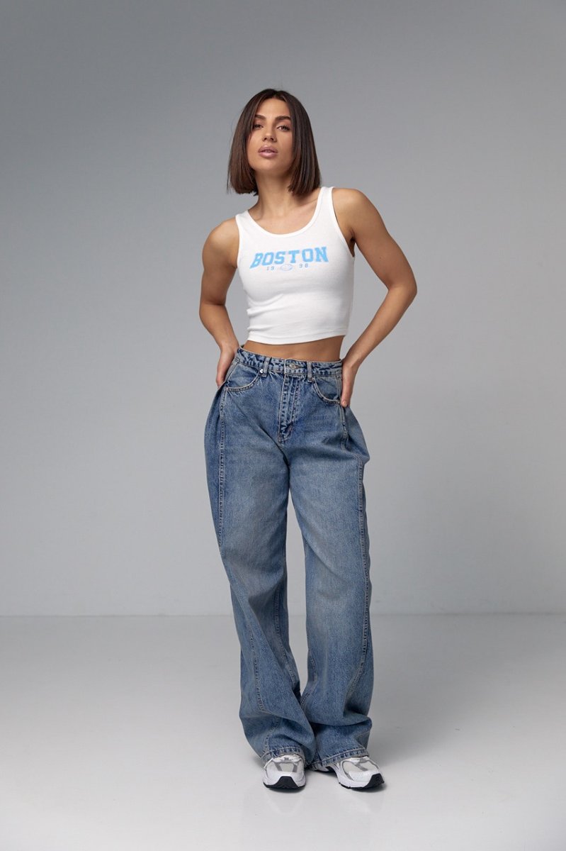 Принт в виде надписи Boston, который спереди украшает изделие, станет изюминкой твоего наряда. В модели края низа прямые, круглая горловина и проймы обшиты тонкой окантовкой.