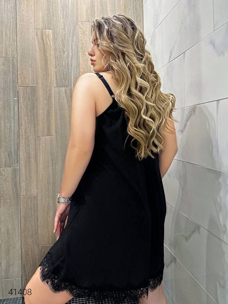 Ночная рубашка женская. Классическая ночная рубашка на регулируемых бретелях. Спереди декорирована сеточным кружевом, по низу – кружево-ресничка. Ткань: креп шифон, очень легкая и приятная к телу. Состав: полиэстер – 95%, хлопок – 5%.