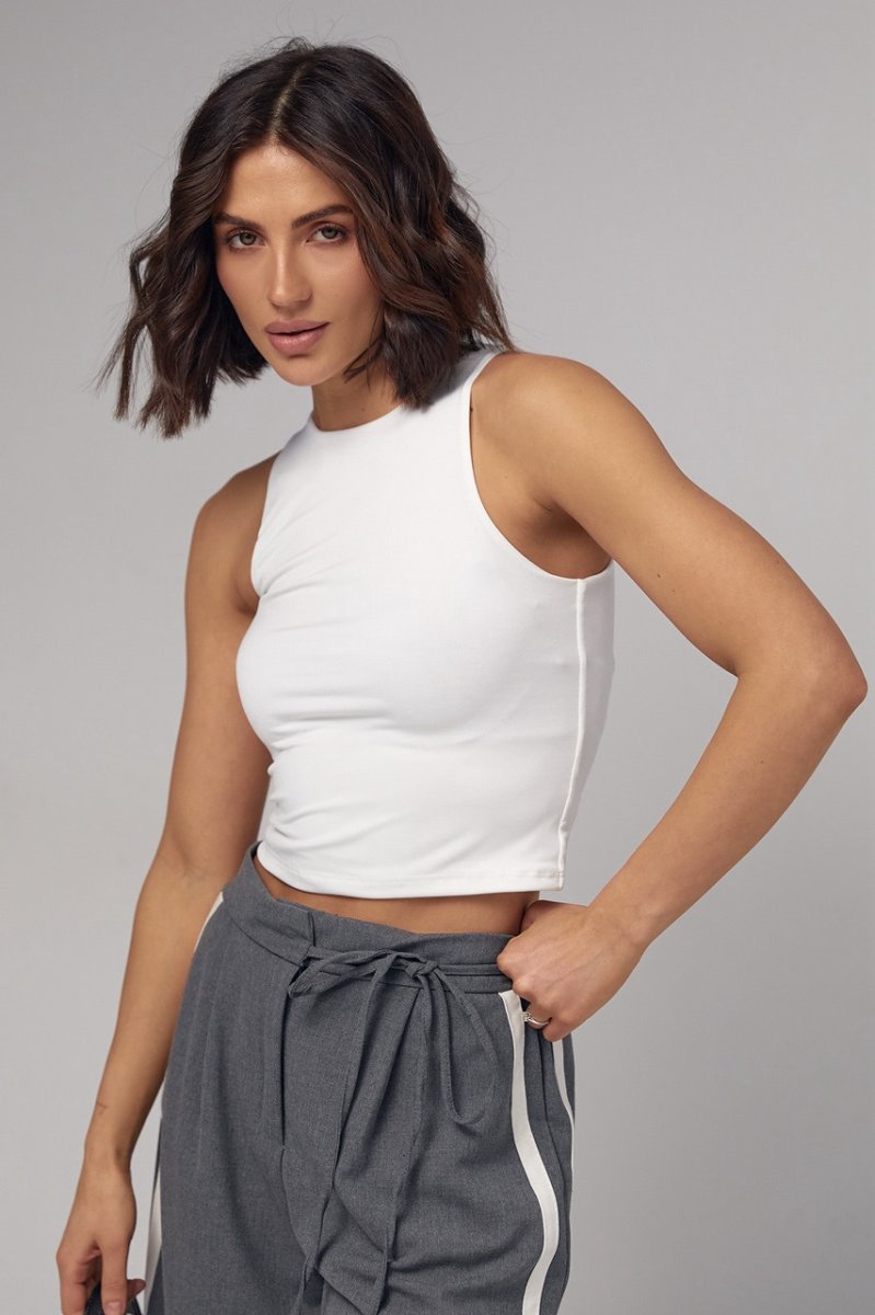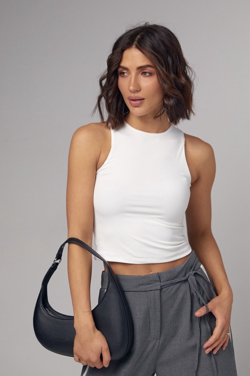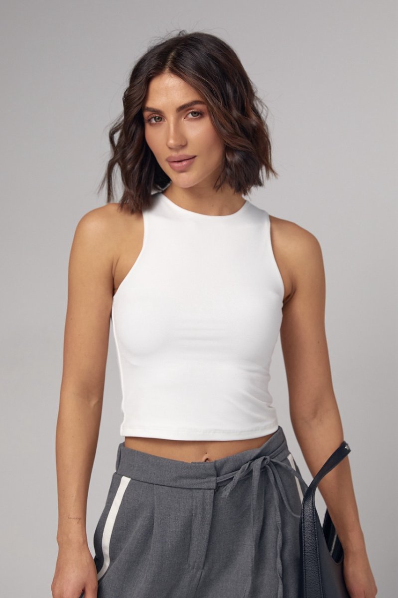 Однотонная базовая майка с эластичной ткани - идеальное дополнение к любому модному образу! Эта модель подойдет и под женские брючные костюмы, и под нарядные юбки, и под повседневные джинсы.