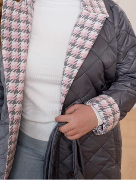 Стильная и современная комбинация, понравившаяся любой моднице. Мы скомбинировали стеганную плащевку, которая относится к более классическому варианту курток со вставками из ткани шерсть, которая добавляет легкости изделия и делает изделие расслабленным.