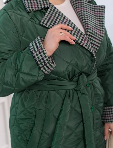 Стильная и современная комбинация, понравившаяся любой моднице. Мы скомбинировали стеганную плащевку, которая относится к более классическому варианту курток со вставками из ткани шерсть, которая добавляет легкости изделия и делает изделие расслабленным.