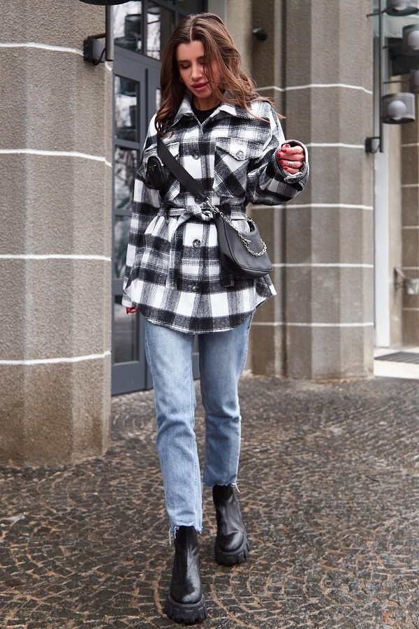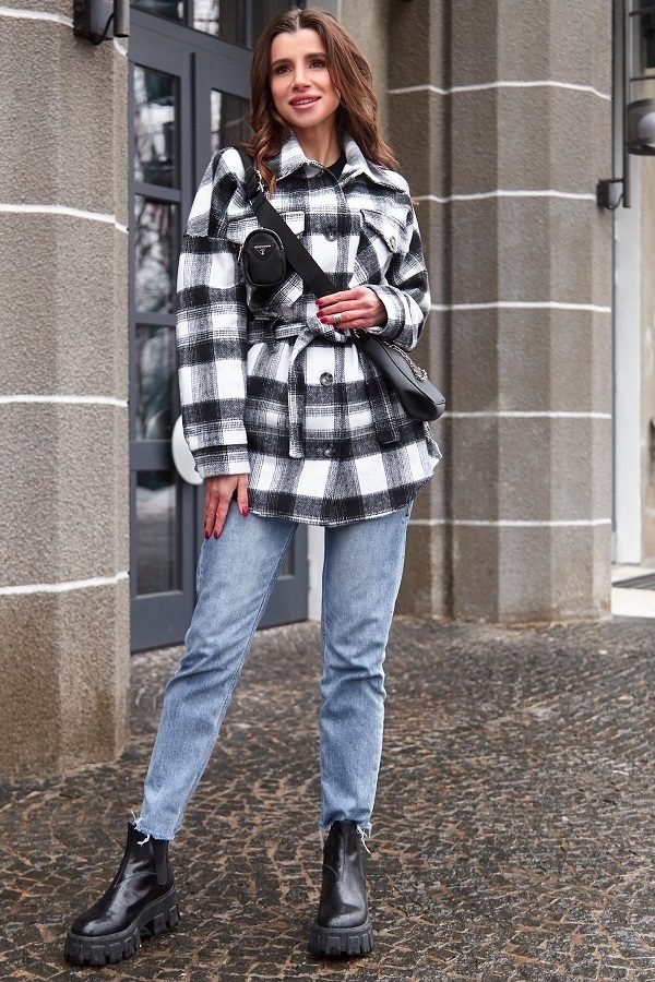 Весной и осенью девушкам и женщинам как никогда хочется выглядеть стильно. Подчеркнуть фигуру и индивидуальность поможет наша новинка пальто-рубашка в трендовую клетку. Клетка – это незаменимый узор, который не требует дополнений! Клетка крайне универсальна - не нужно бояться своих пышных или, наоборот, слишком худощавых форм, невысокого роста, присматриваясь к пальто в клетку. Данный узор подойдет девушка и женщинам любого возраста и с любой фигурой. Короткое двубортное пальто с накладными карманами на груди и пояском в тон отлично сочетается с разнообразной одеждой и дает возможность каждый раз создавать стильные и интересные луки. Пальто без подкладки, по бокам два прорезных кармана, которые добавят удобства и практичности.
