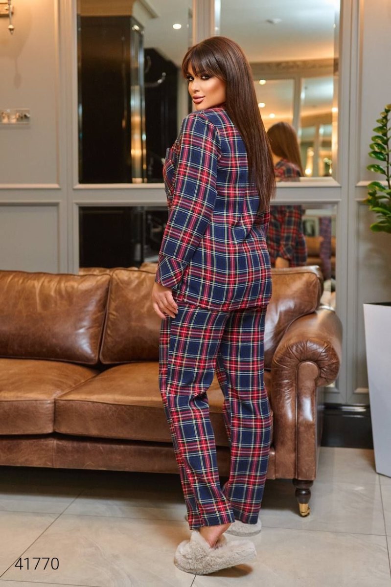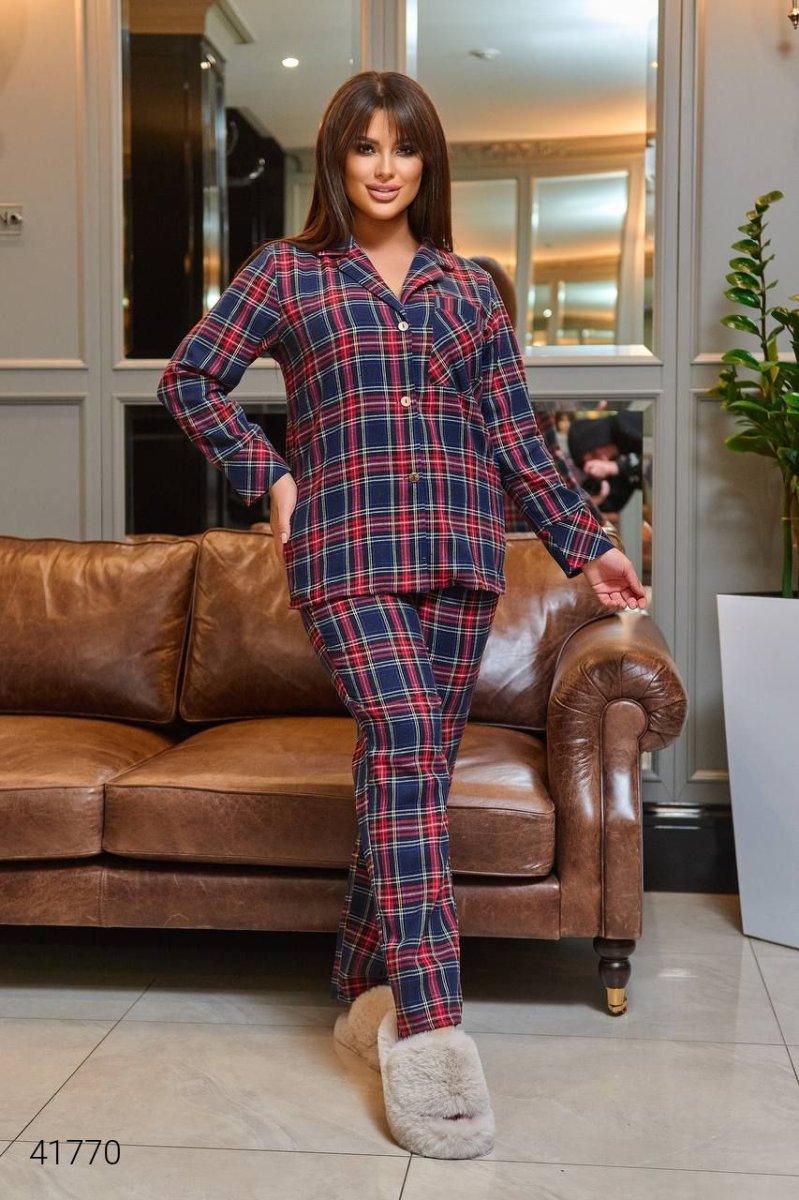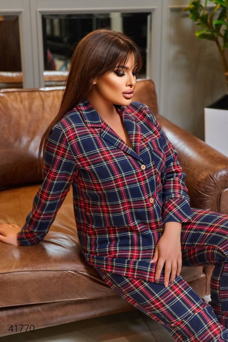 Пижама женская в клетку. Ткань: турецкий трикотаж.