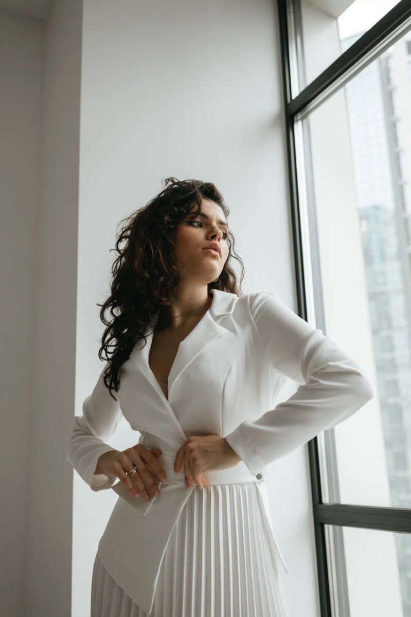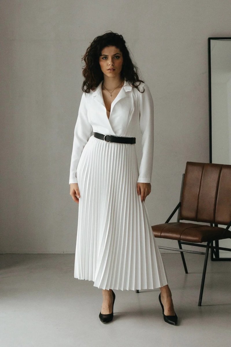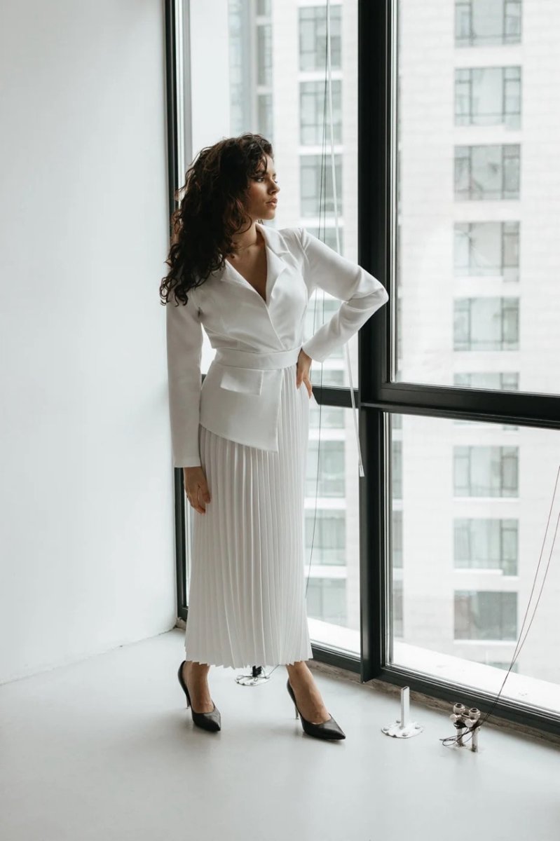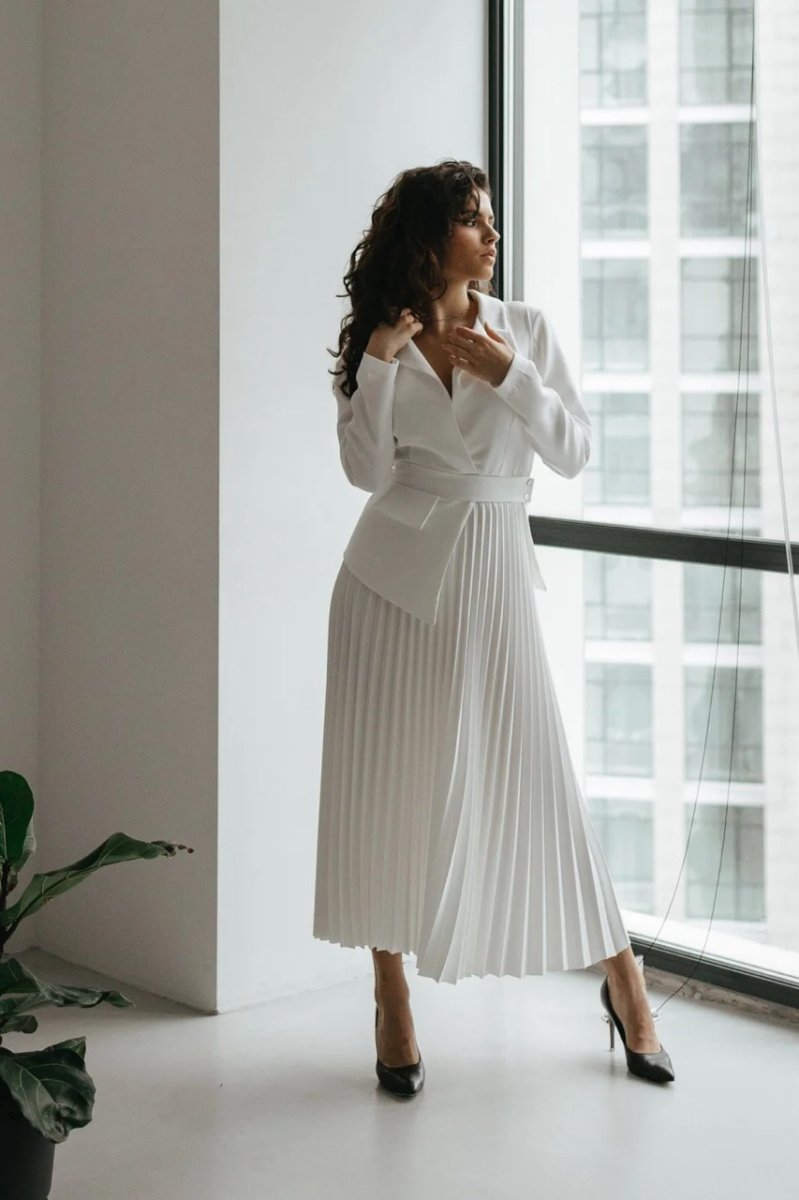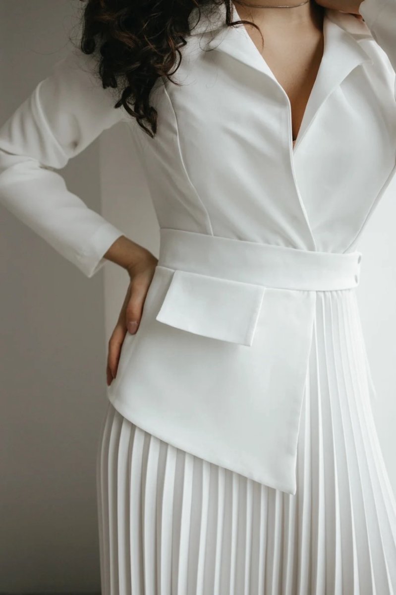 Фасон: полуприталый, асимметричный, с юбкой плиссе