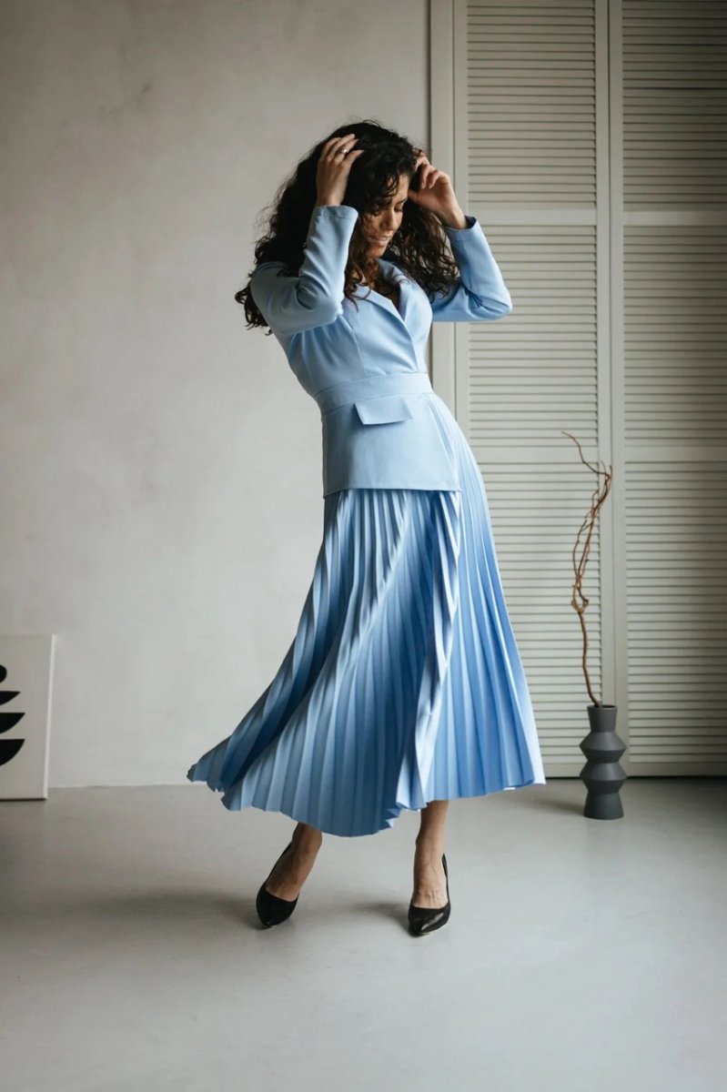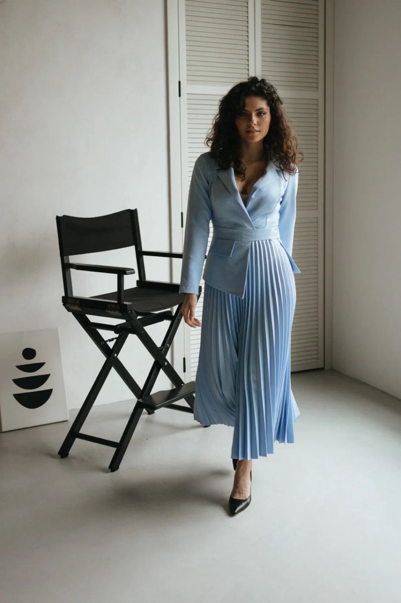 Фасон: полуприталый, асимметричный, с юбкой плиссе