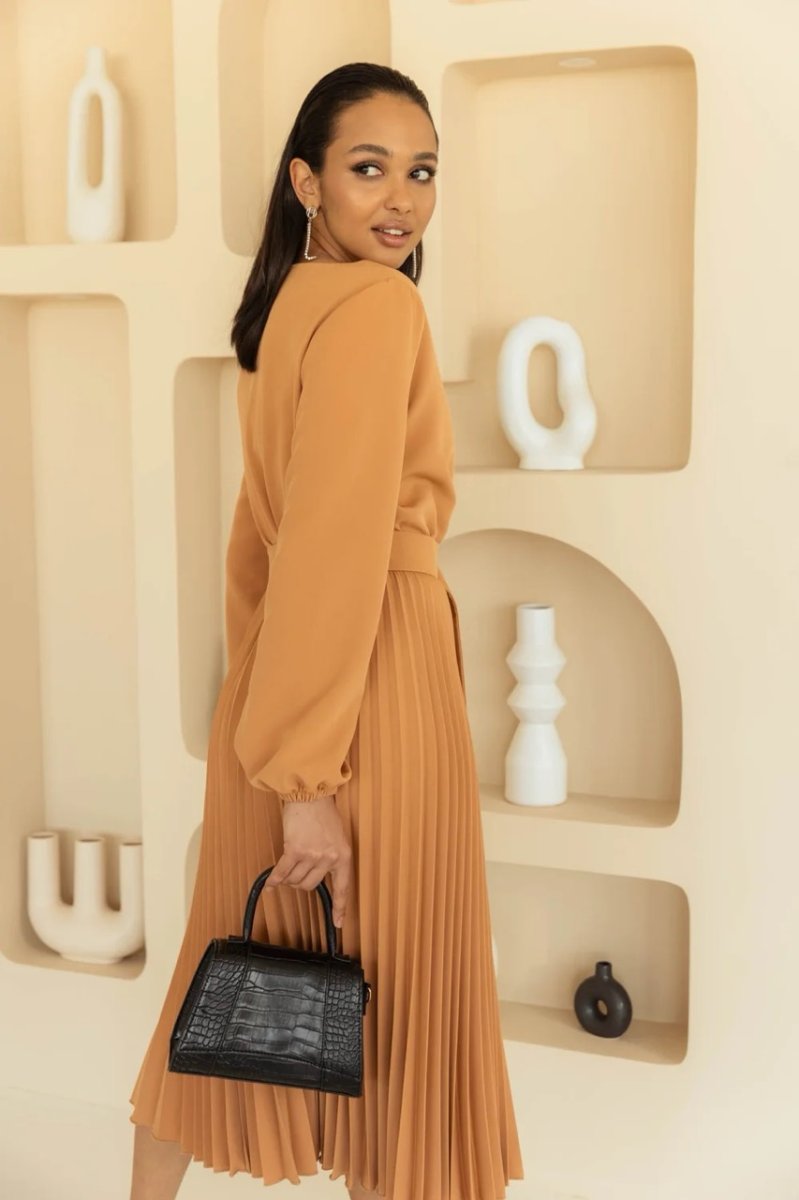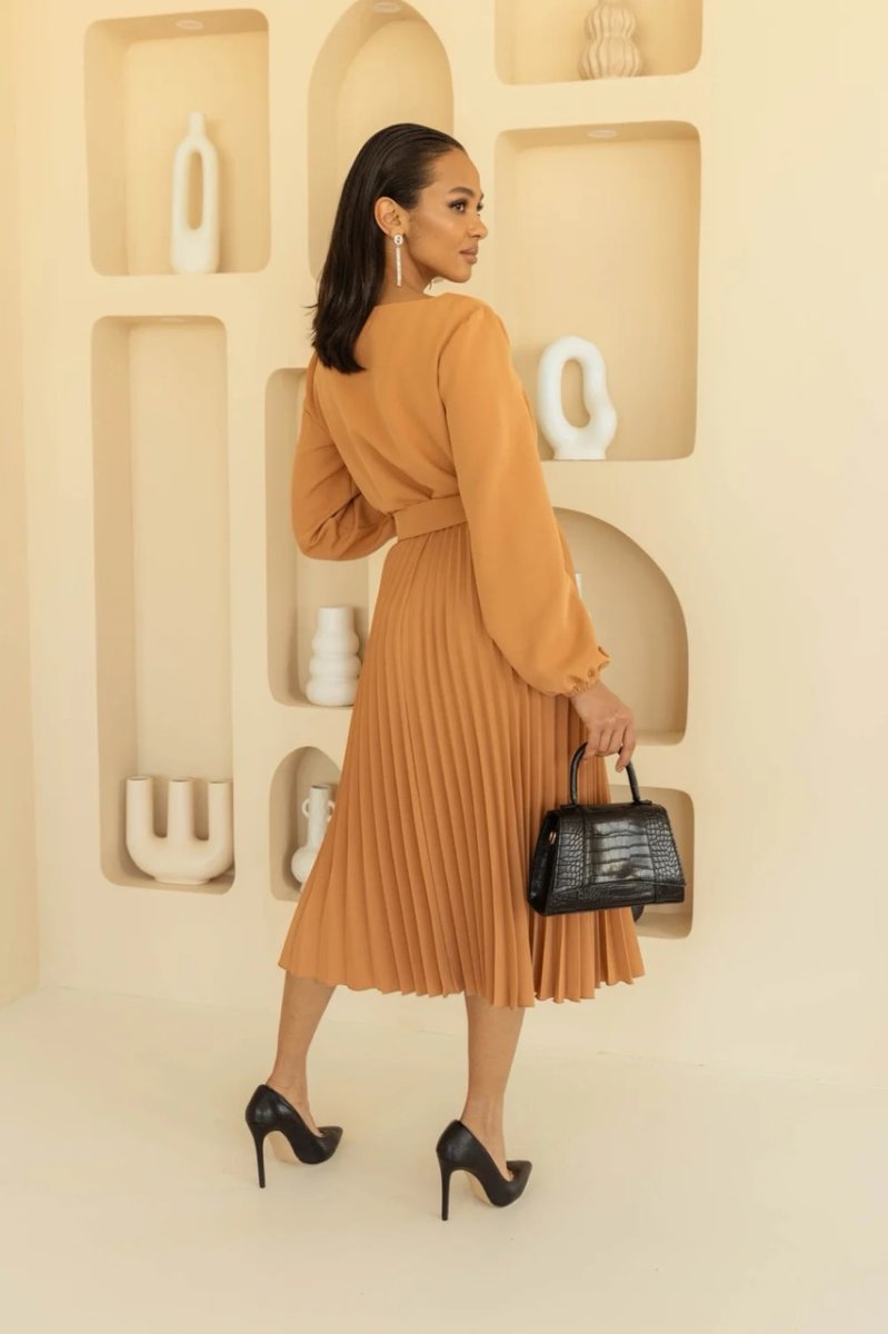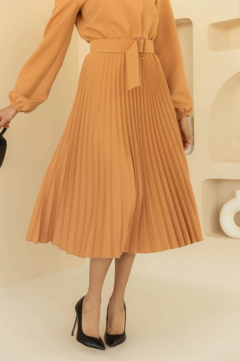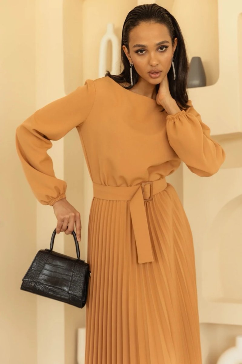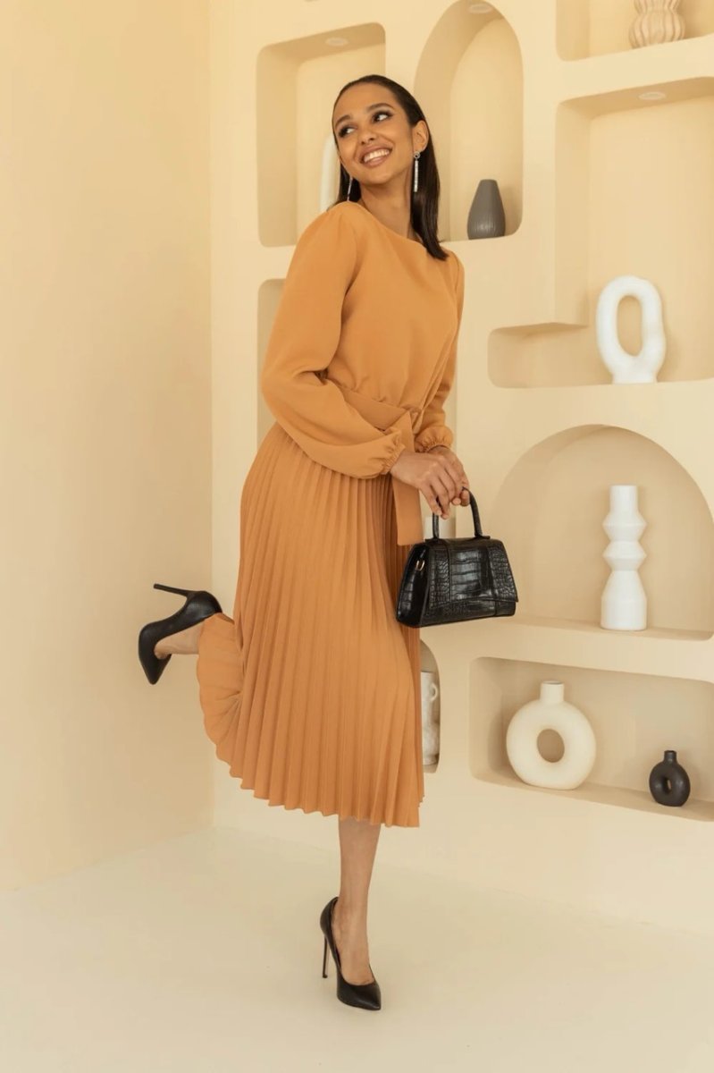 Декоративные элементы: плиссированная юбка, пояс с пряжкой