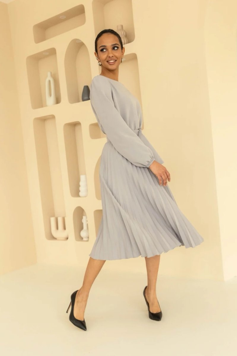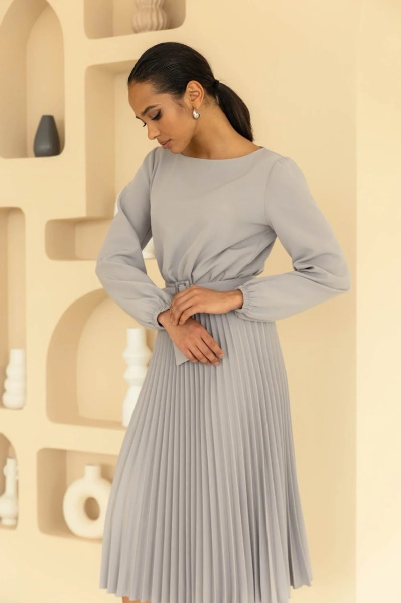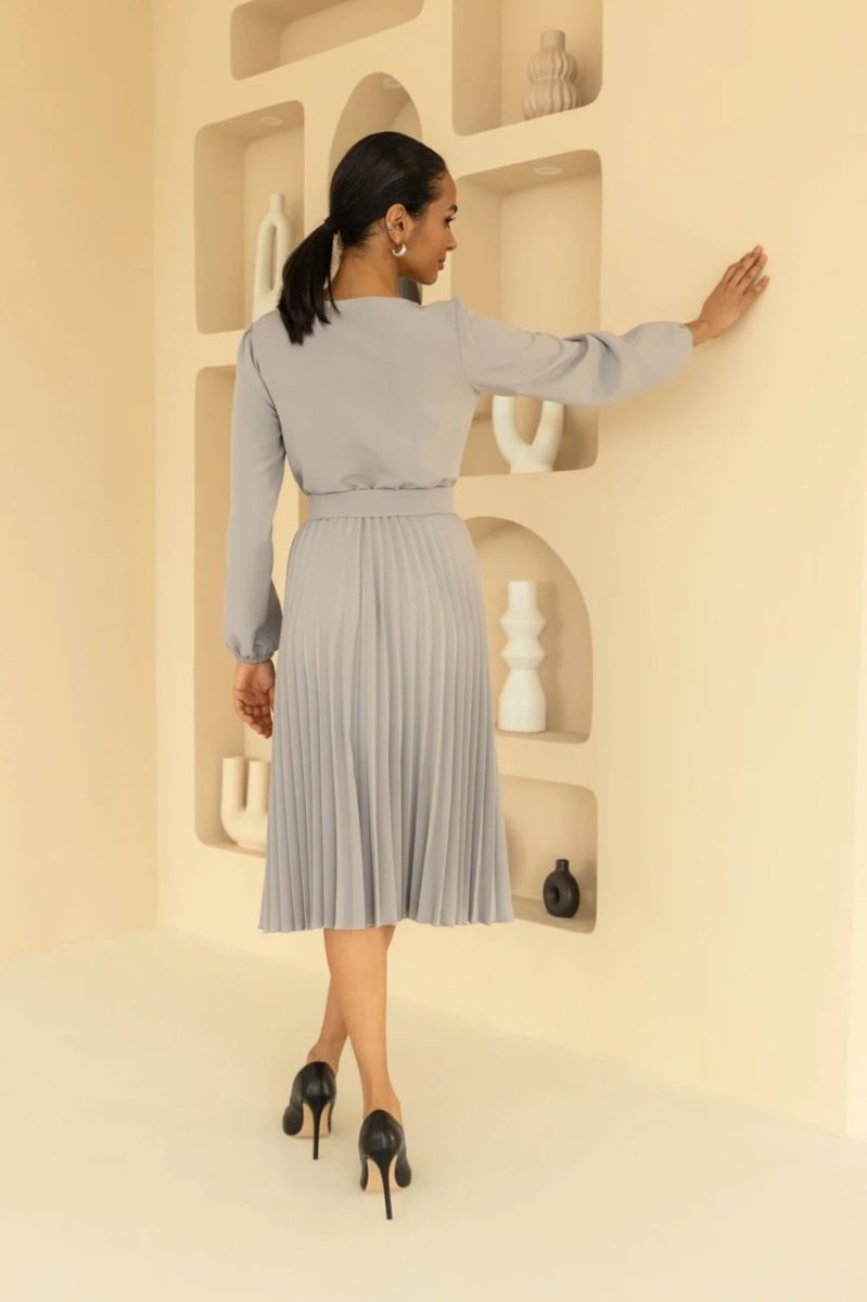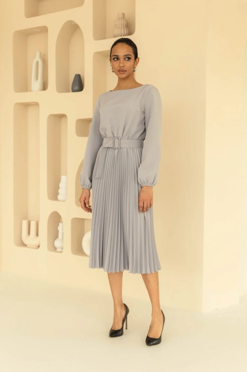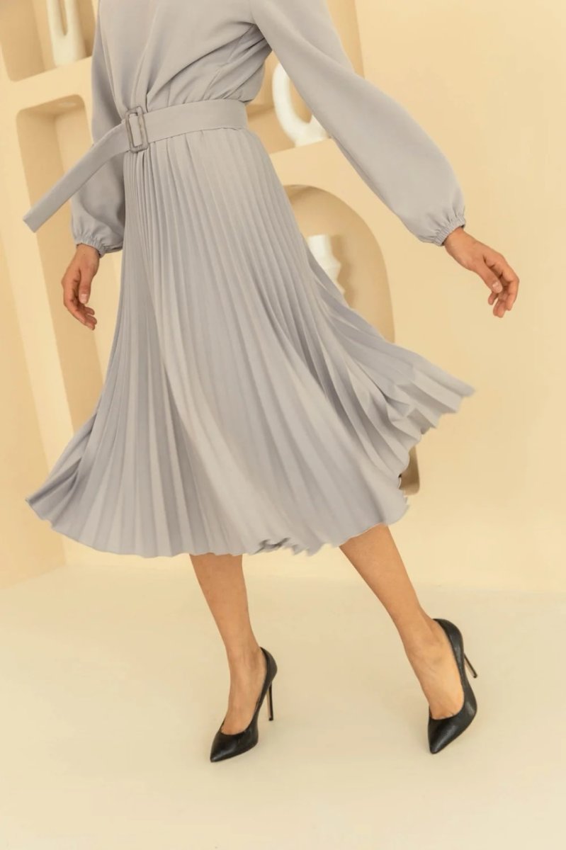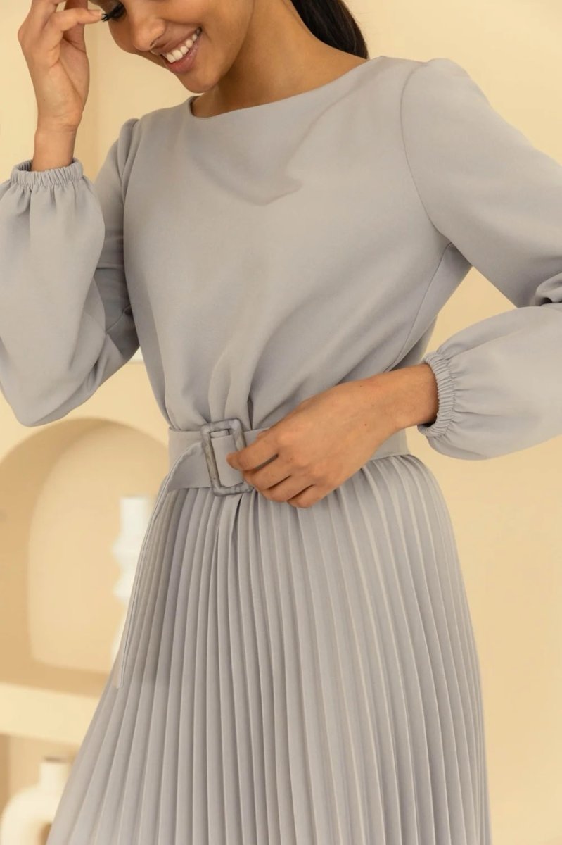 Декоративные элементы: плиссированная юбка, пояс с пряжкой