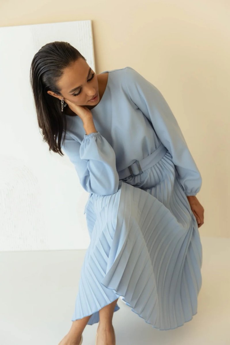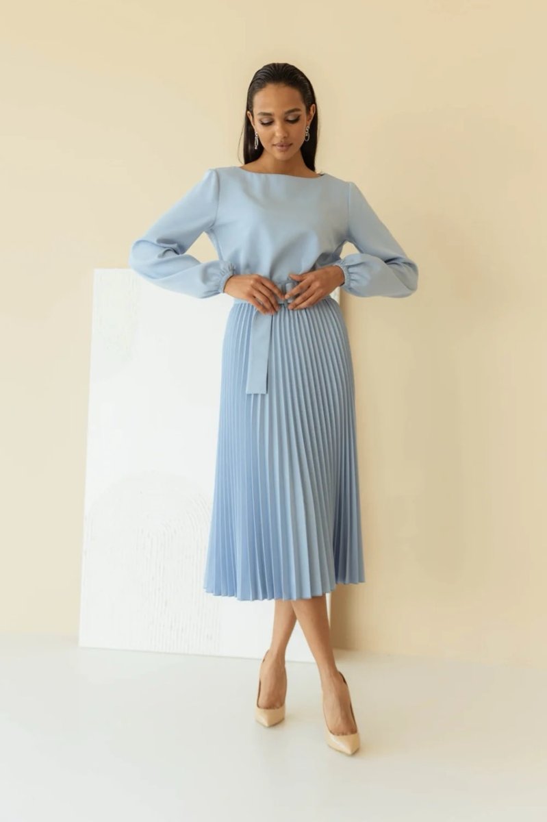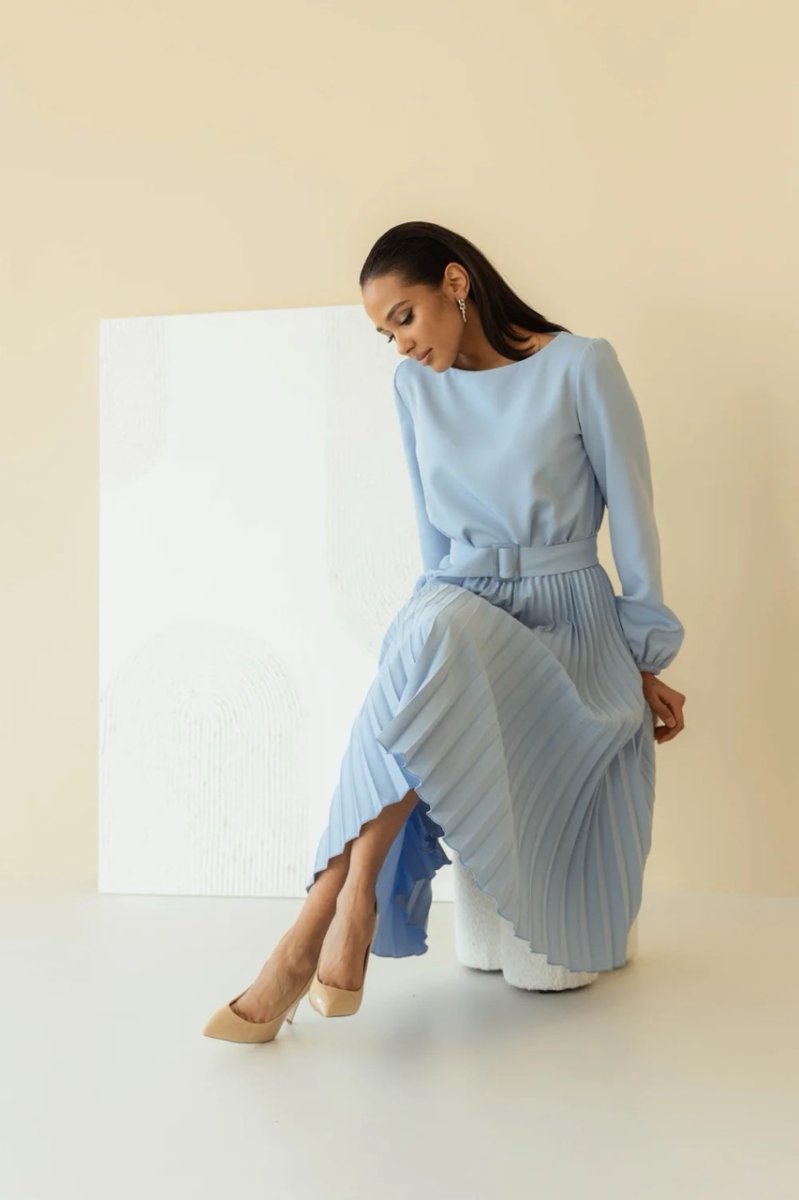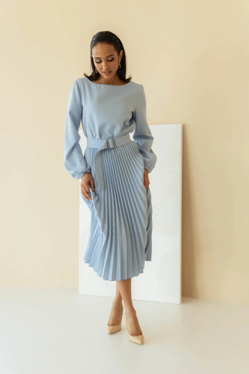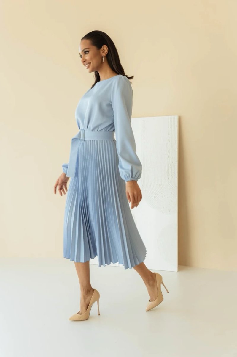 Декоративные элементы: плиссированная юбка, пояс с пряжкой
