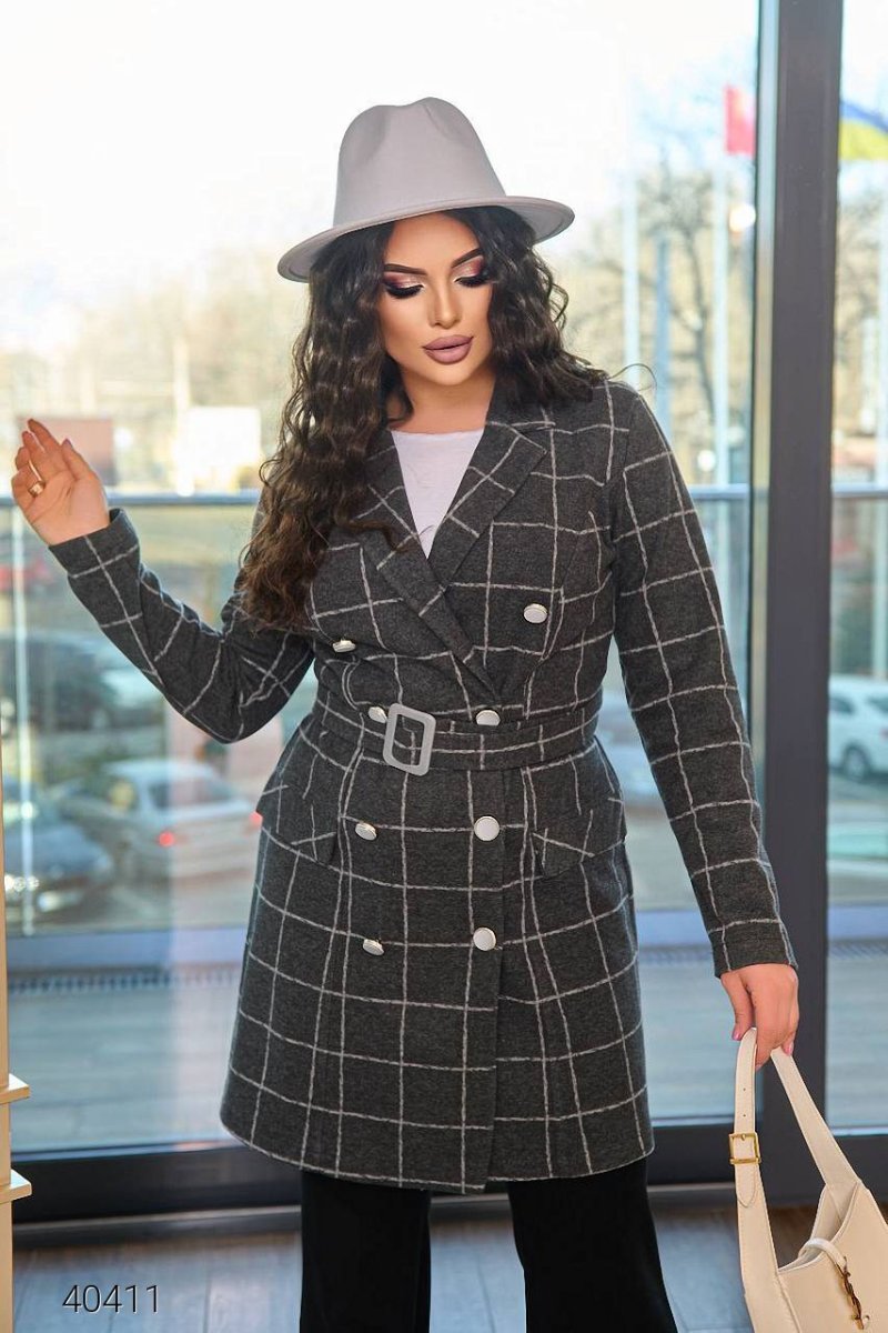 Платье-пиджак с подплечниками, застегивается на пуговицы, пояс в комплекте. Ткань: стрейч кашемир с шерстью.