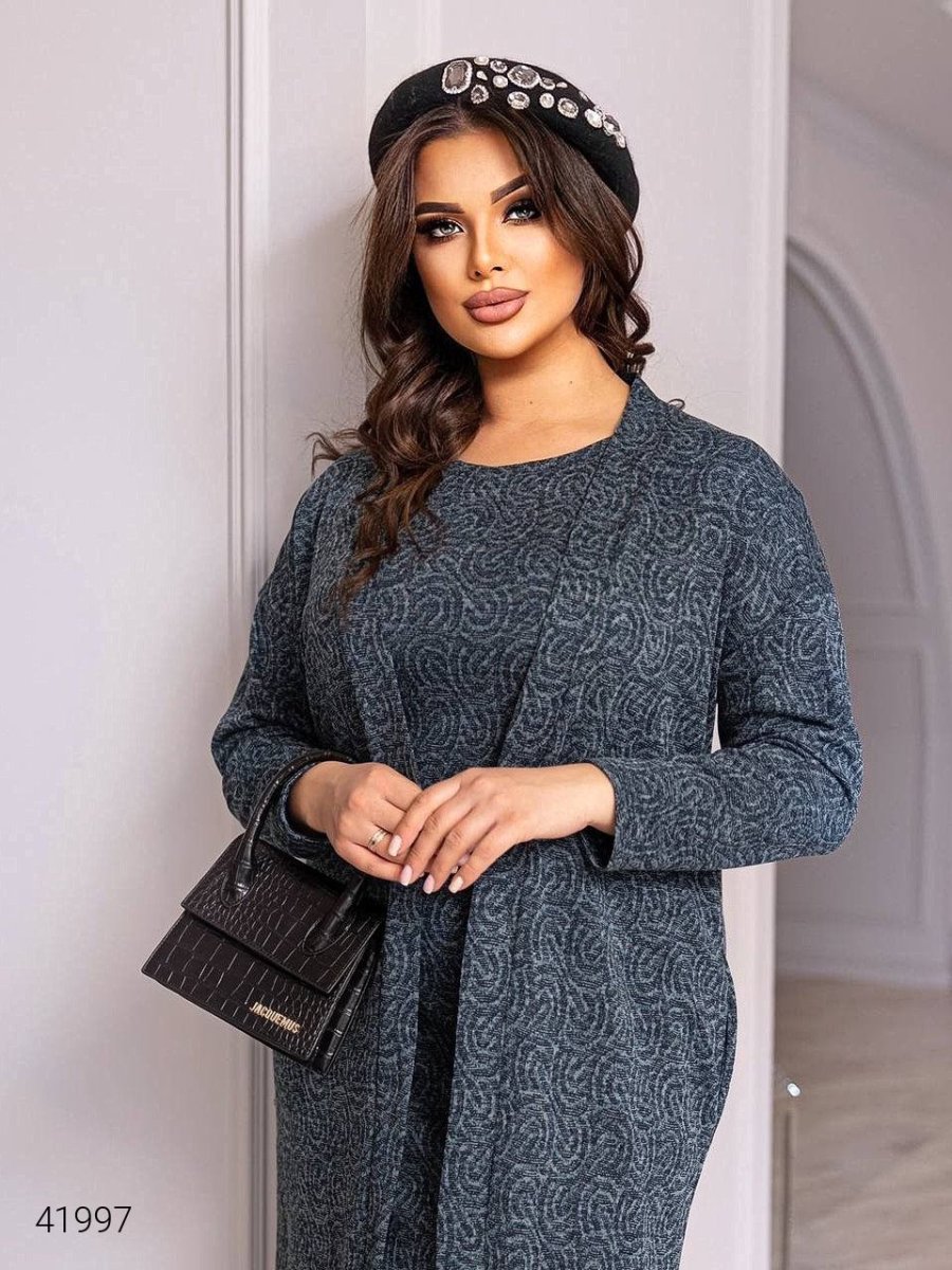 Платье плюс сайз в комплекте с кардиганом 41997 зеленый