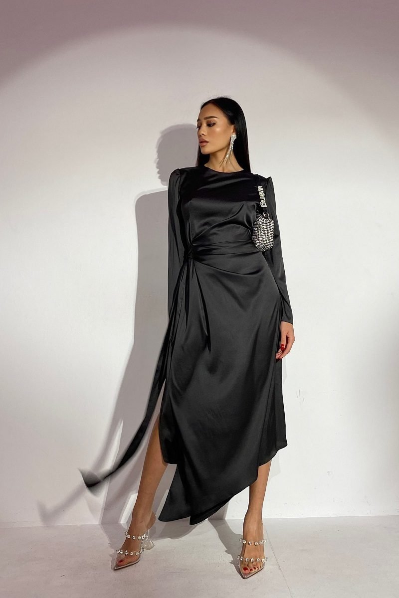 ● Декоративные элементы: драпировка по переду, высокий разрез по боку, ассиметричный низ.