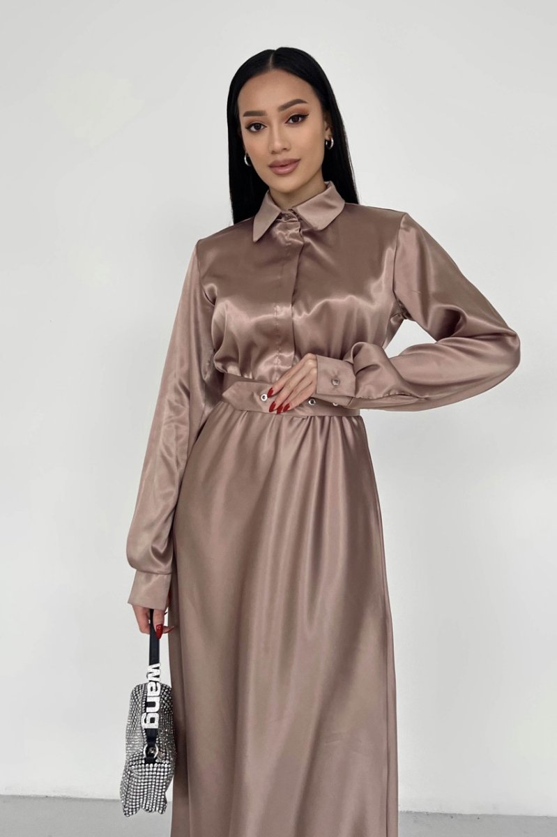 Платье из королевского атласа придаст образу легкости и утонченности, создаст романтическую атмосферу вокруг великолепной обладательницы.