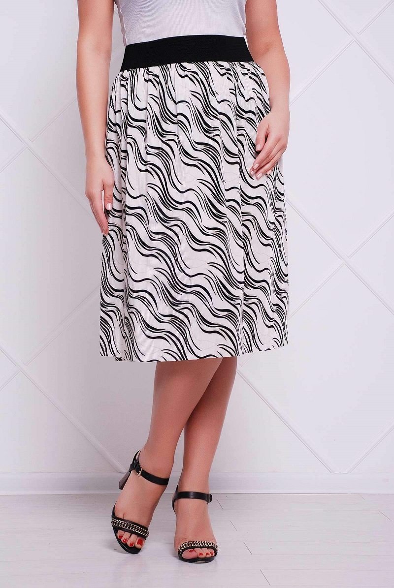 Летняя юбка из тонкого трикотажа с эффектом плиссе на резинке. Универсальная длина меди и простой силуэт позволяют ей стать основой самых разных комплектов летнего гардероба.