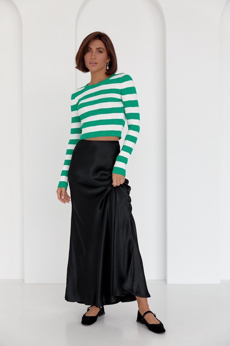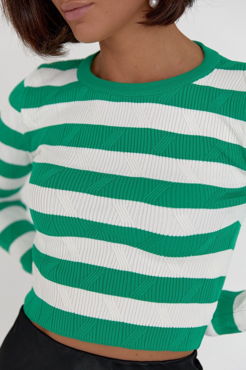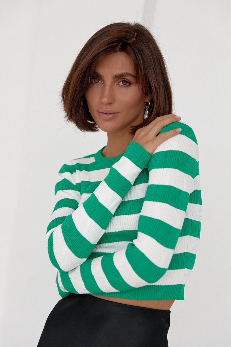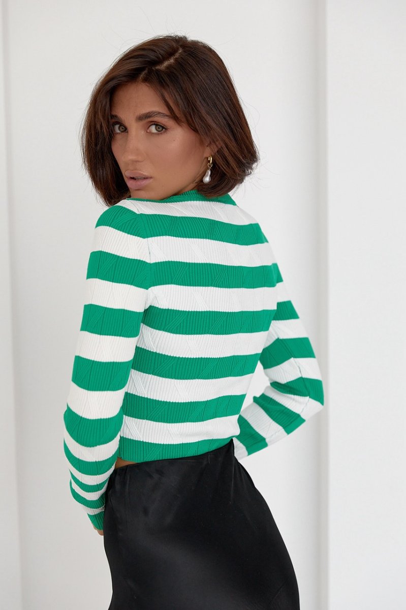 Приталенный джемпер в яркую полоску - 92161 зеленый