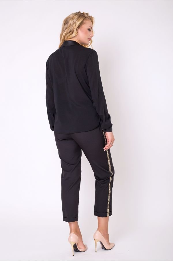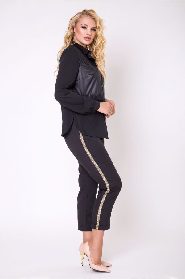 Классическая блуза Аида создана с использованием двух видов ткани и украшена набивным кружевом. Дополняют дизайн изделия декоративные пуговки, использованные в качестве застежки. В боковых швах разрезы.