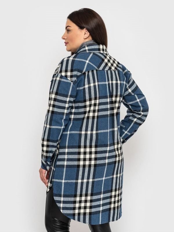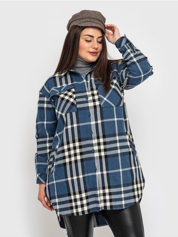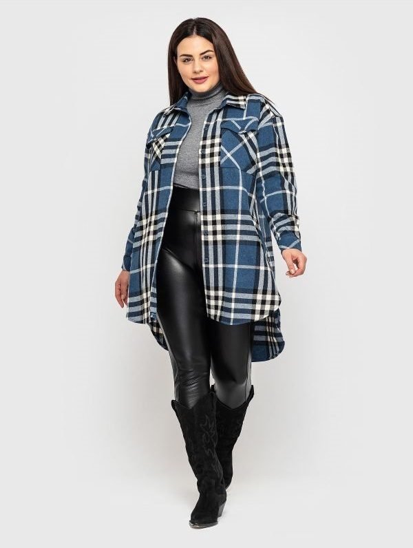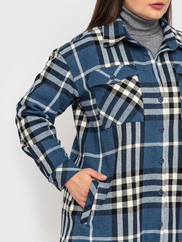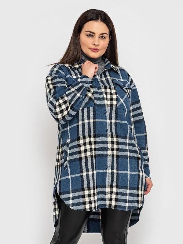 Объемная рубашка-туника из байки средней плотности. Слегка спущенный рукав, манжеты на пуговицах. По бокам карманы с листочками. Нагрудные карманы с клапанами на пуговицах. Спинка немного удлинена, по боковым швам разрезы. Застегивается на пуговицы.