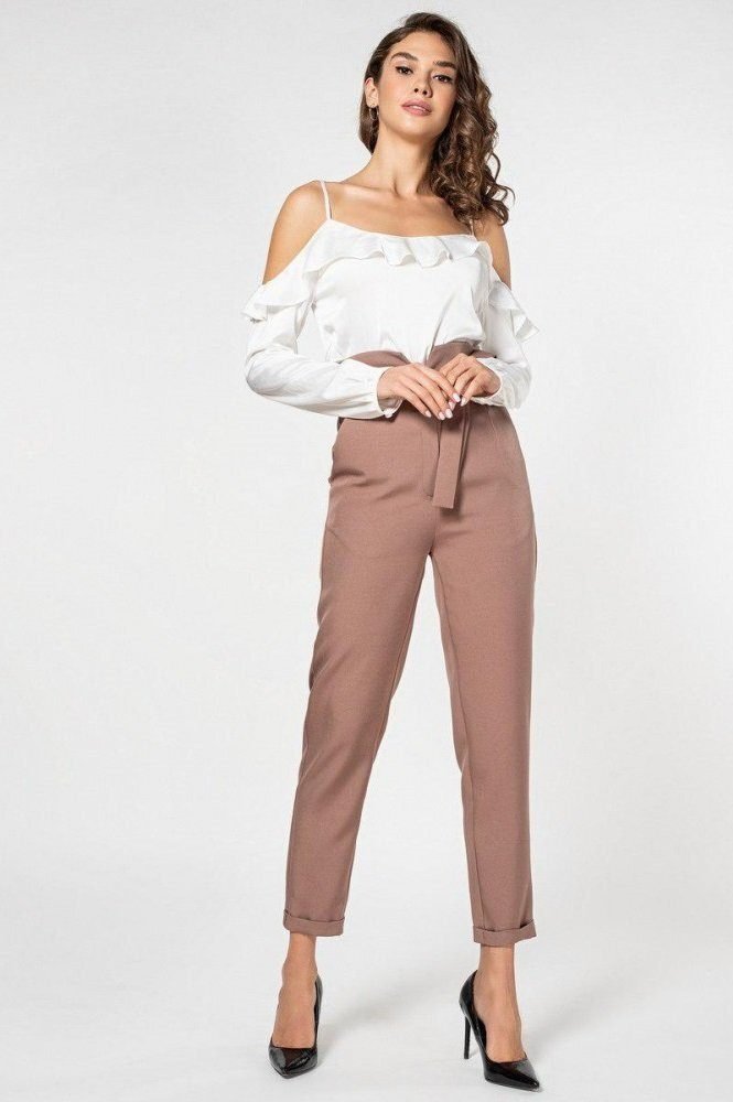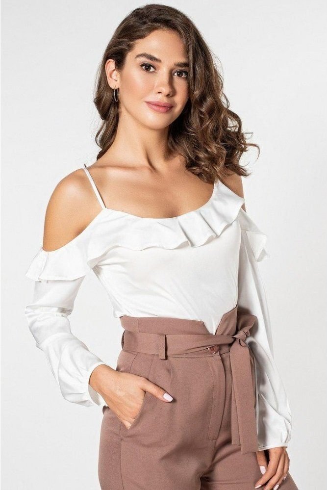 Шёлковая блуза на тонких регулируемых бретелях с нежной оборкой по декольте и плечам. Длина по спинке (прибл.) - 58 см.