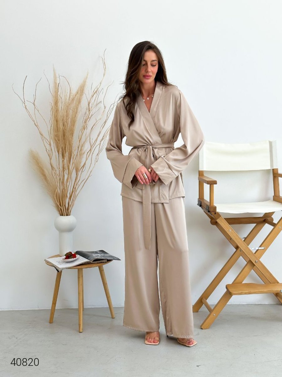 42-46 (Кимано: ОГ 106, длина 70, длина рукава от плеча 63. Штаны: ОТ 66-96, ОБ 120, длина 107)