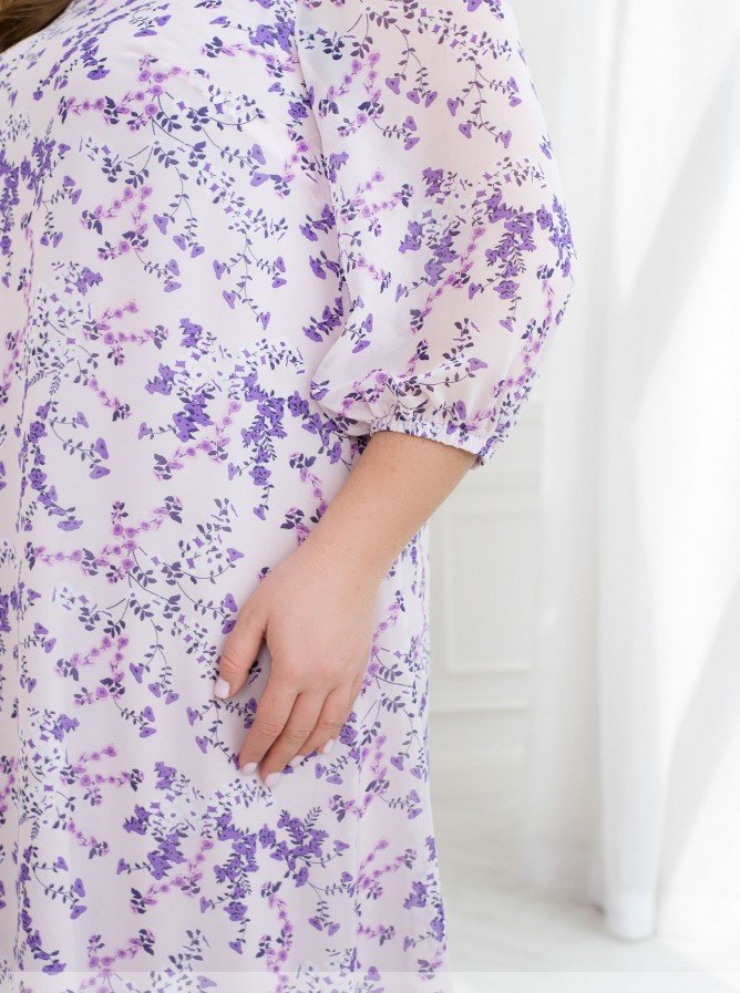 Это легкое шифоновое платье – идеальный выбор для стильного и комфортного летнего образа. Она окутана цветочным принтом и имеет свободный крой. Это платье состоит из двух частей: нижняя тонкая подкладка и верхняя воздушная шифоновая ткань, нежно облегающая тело и создающая легкий и ощутимый ветерок. Рукава с манжетами в виде резинки придают элегантность и романтичность, а горловина в форме V-образного выреза вытягивает линию шеи, создавая более утонченный силуэт.
