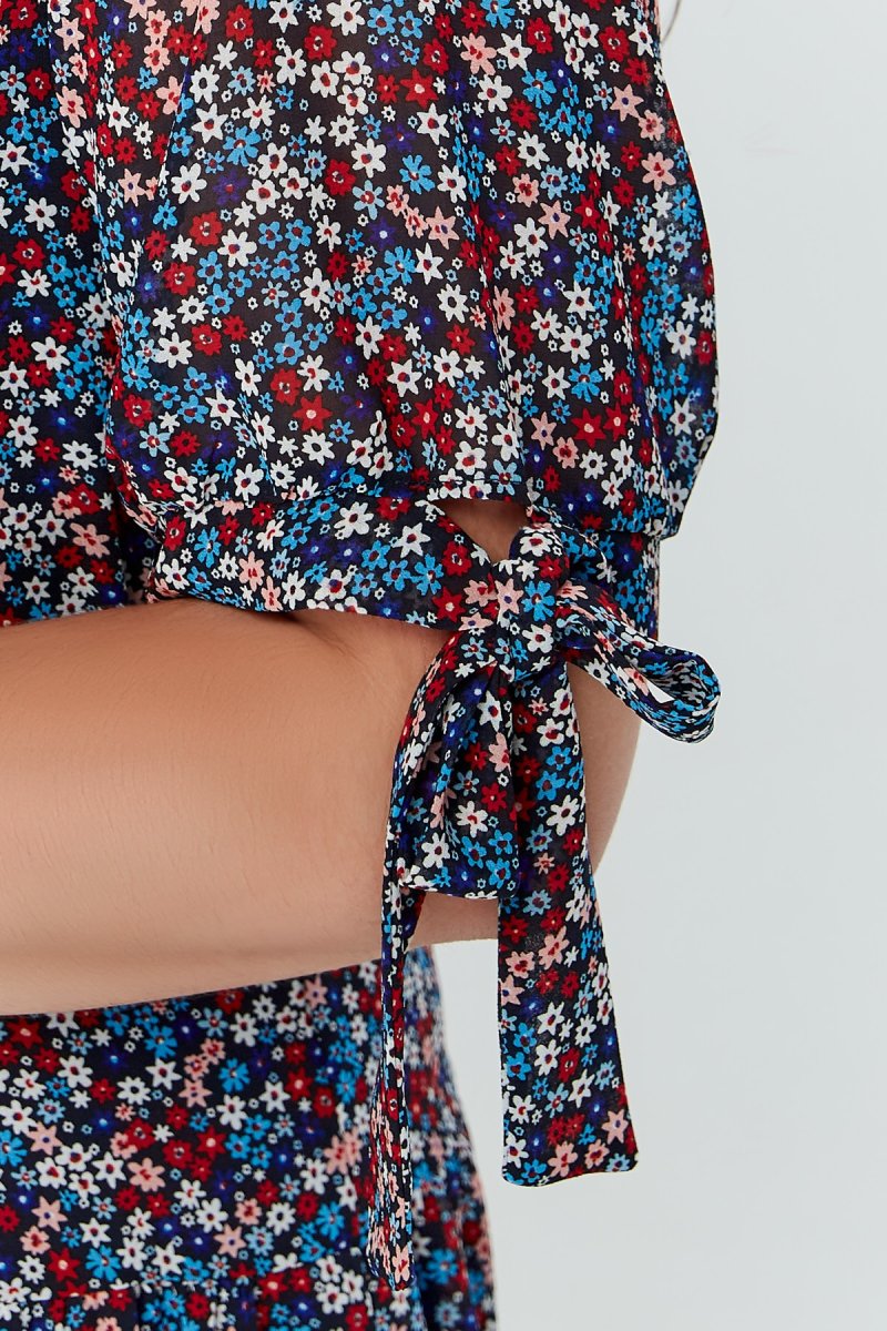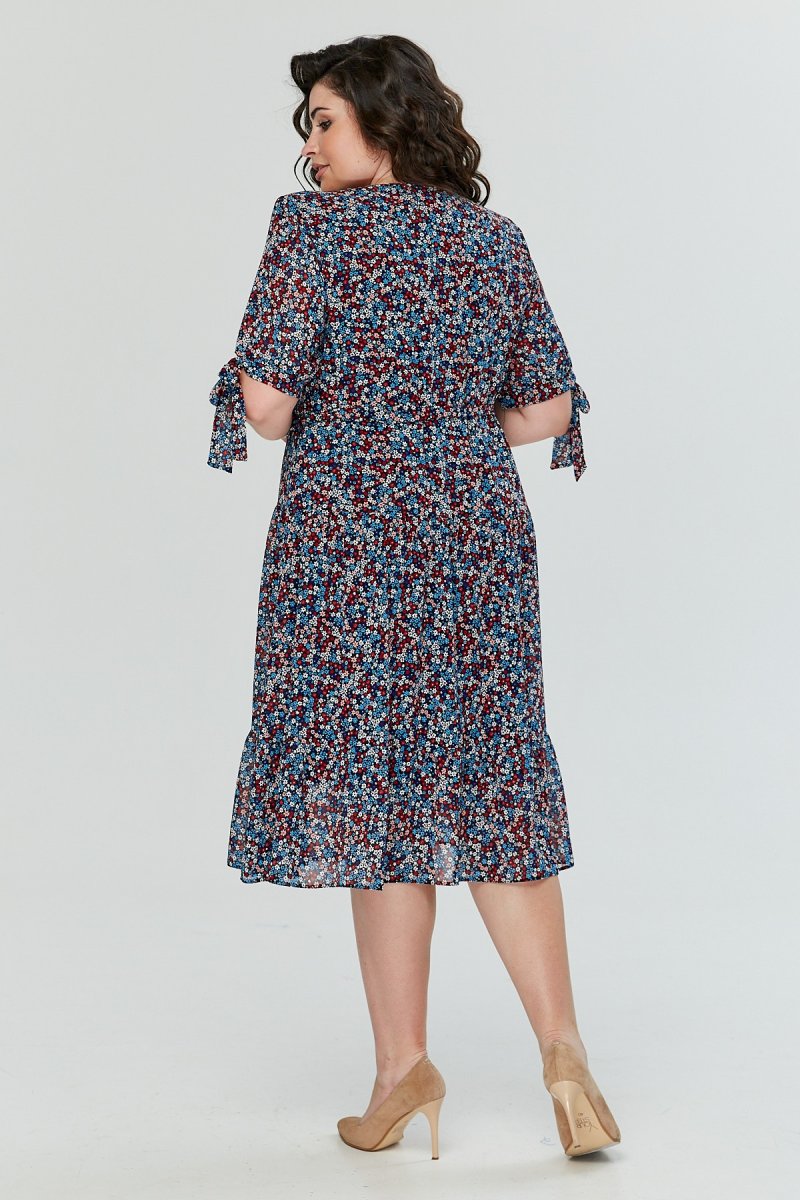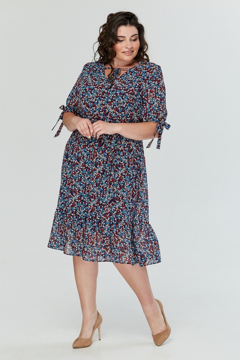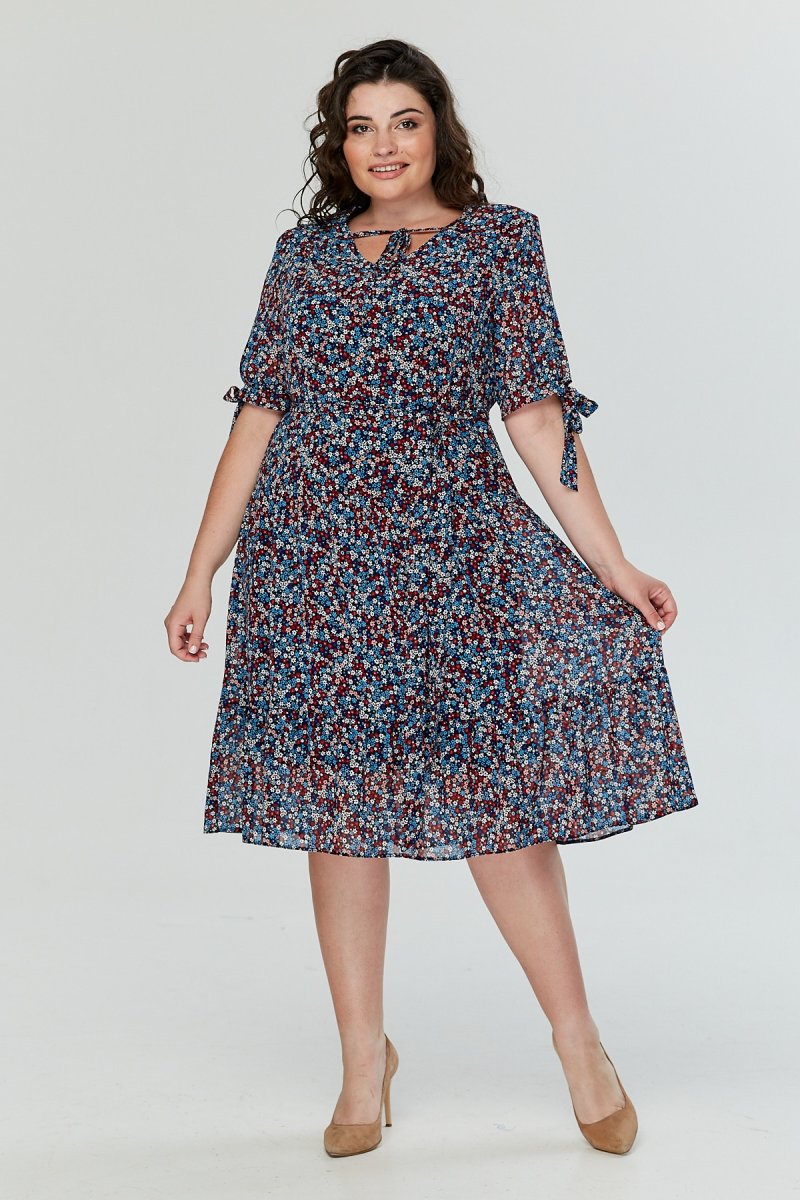 Шифоновое платье с цветочным принтом: рисунок является неоспоримым летним хитом. Растяжимость ткани низкая. Для удобства предусмотрена непрозрачная трикотажная подкладка. Модель свободного силуэта. С помощью входящего в комплект пояса можно поставить выверенный акцент на талии. Легкость придает не только фактура ткани, но и сборка по линии бедер в два яруса. Рукав короткий на манжете с завязками. На уровне кокетки по полке – завязка на шнурок. Модель демократична в плане выбора украшений и обуви.