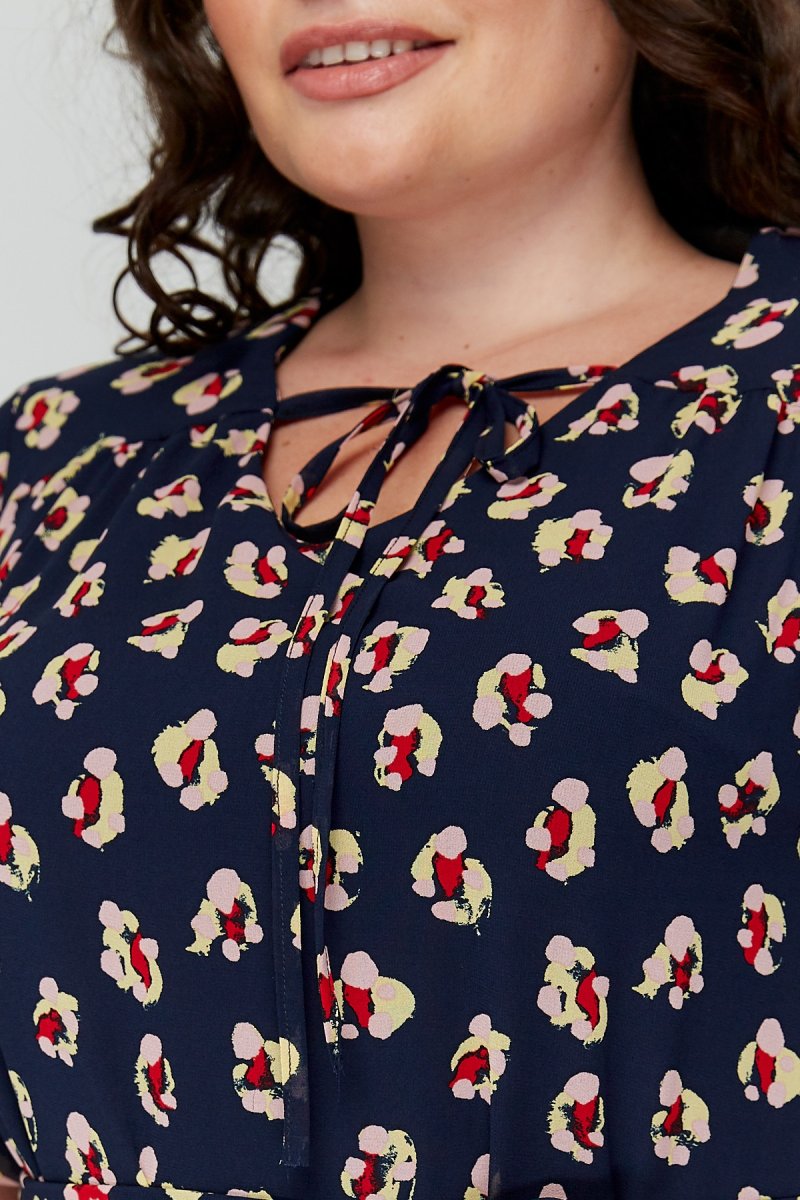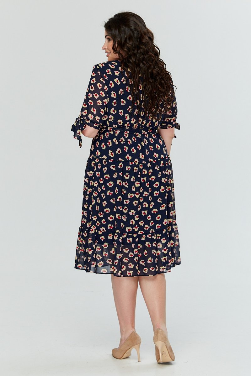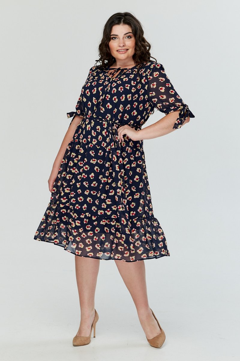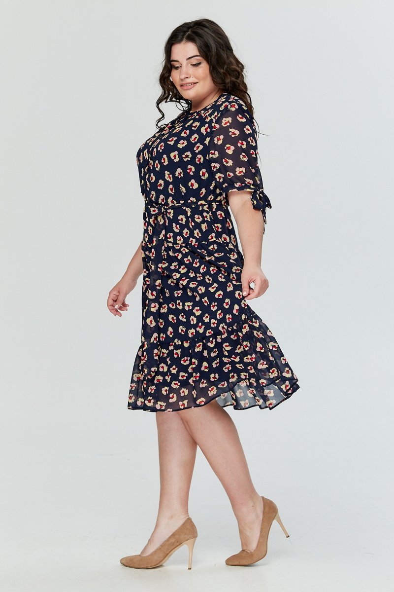 Шифоновое платье с цветочным принтом: рисунок является неоспоримым летним хитом. Растяжимость ткани низкая. Для удобства предусмотрена непрозрачная трикотажная подкладка. Модель свободного силуэта. С помощью входящего в комплект пояса можно поставить выверенный акцент на талии. Легкость придает не только фактура ткани, но и сборка по линии бедер в два яруса. Рукав короткий на манжете с завязками. На уровне кокетки по полке – завязка на шнурок. Модель демократична в плане выбора украшений и обуви.