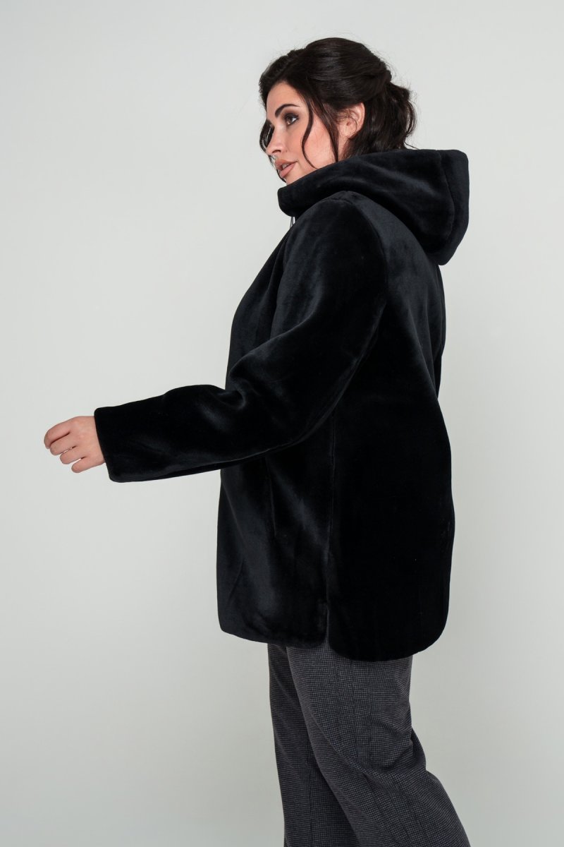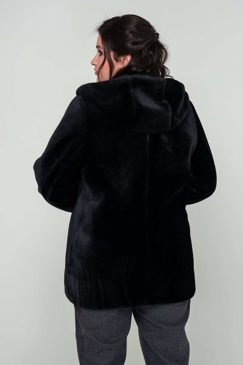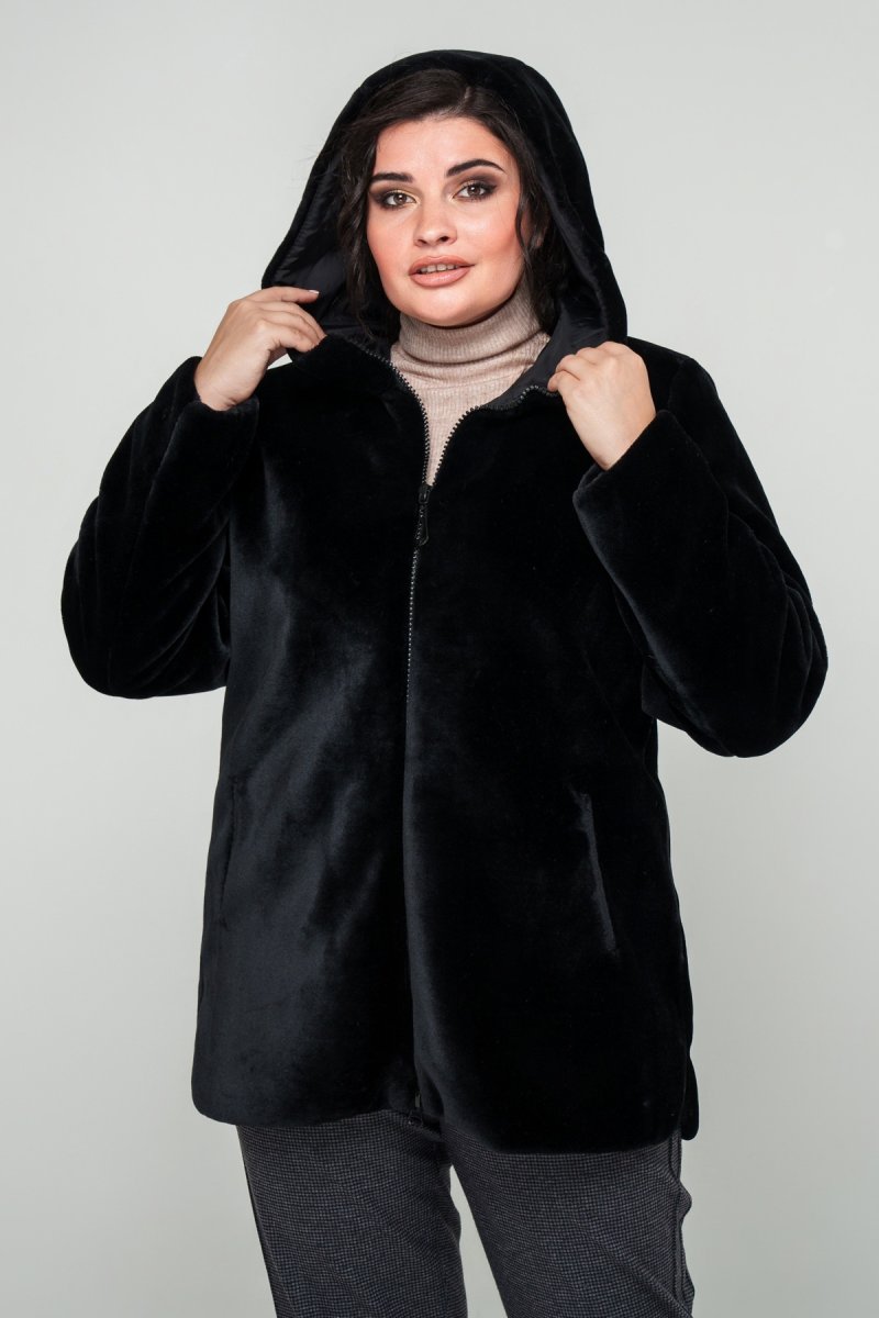 Шуба прямого силуэта, выполнена из искусственного меха. Модель выглядит сдержанно, стильно и имиджево. Рукав втачной, двухшовный. Застёжка на молнию, карман прорезной. Капюшон не съемный. Подкладка из нейлона.