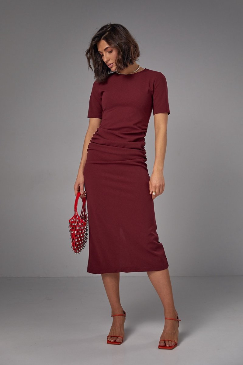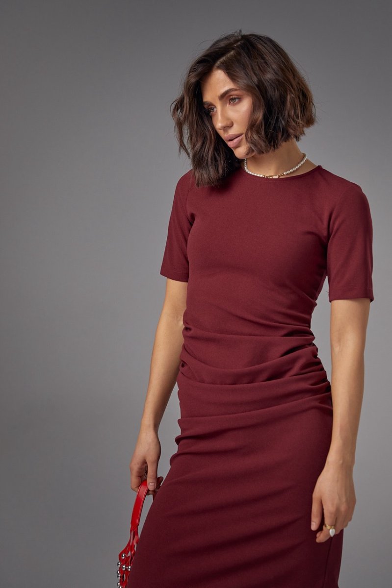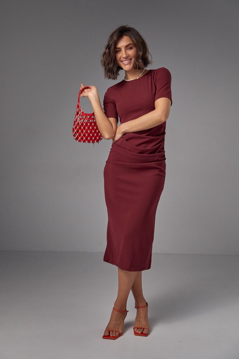 Силуэтное платье миди с драпировкой - 2695 бордо