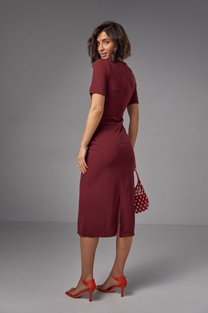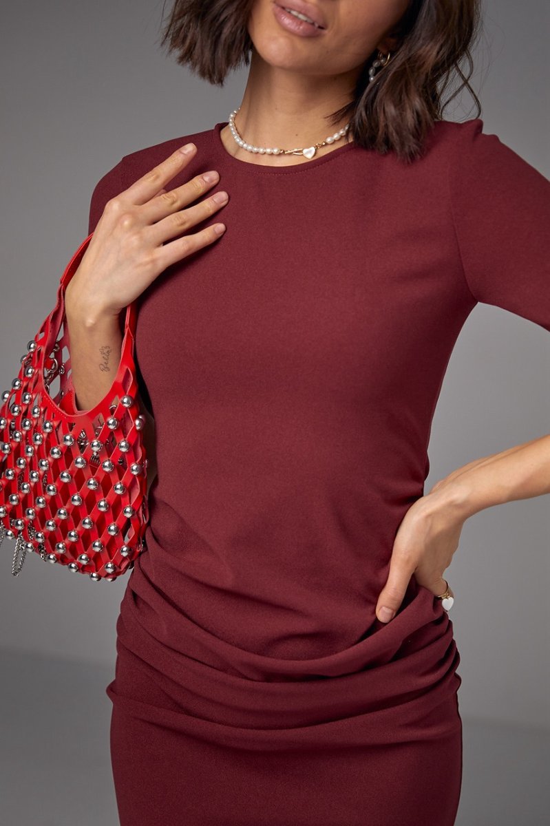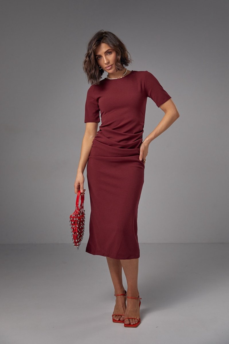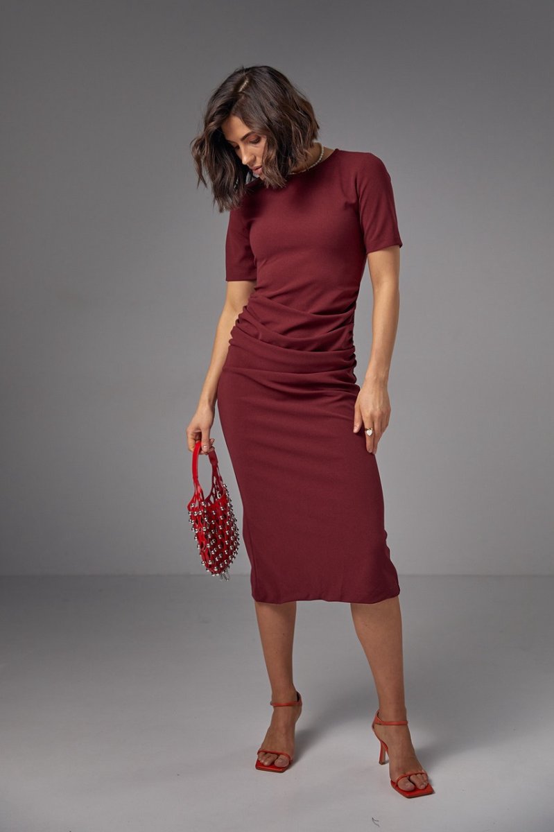 Силуэтное платье миди с драпировкой - 2695 бордо