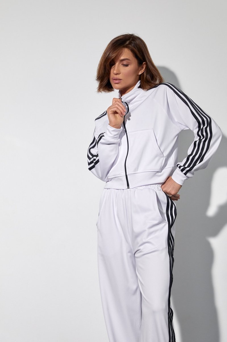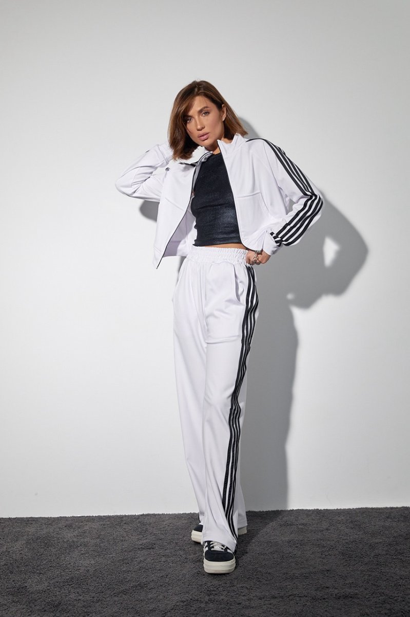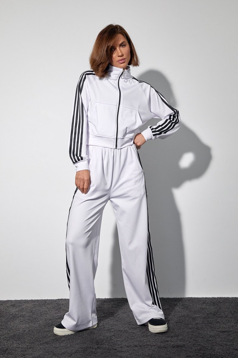 Спортивный женский костюм с лампасами - идеальный выбор для активных и стильных женщин, которые ценят комфорт и модный вид. Этот непревзойденный комплект включает в себя укороченную кофту на молнии и прямые брюки, сочетающие в себе спортивный стиль и элегантность.