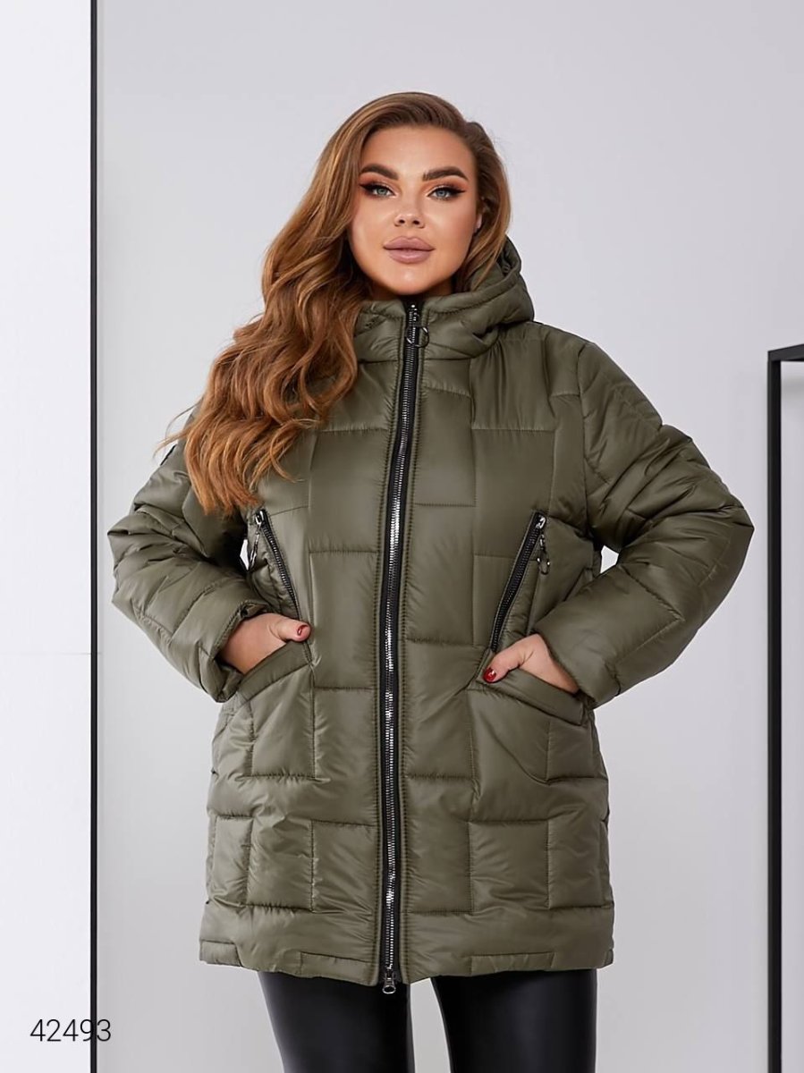 Стеганная женская куртка. Стеганая куртка прямого кроя с большим капюшоном и качественной фурнитурой.