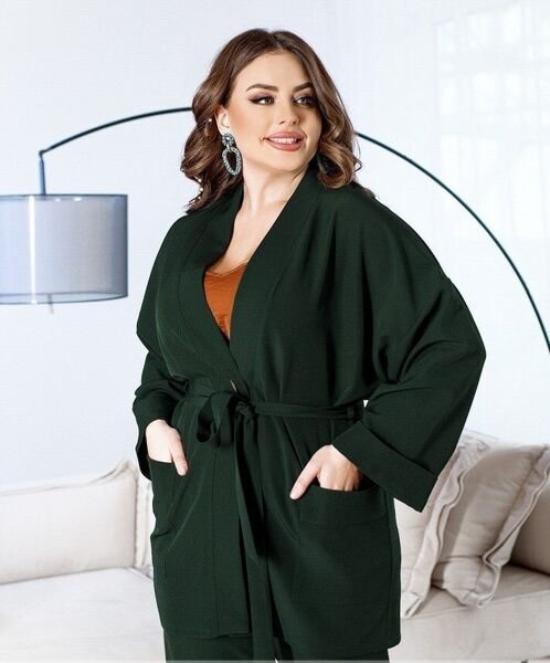 58-60 р-р: длина изделия: 85см, длина рукава от горловины 65см, обхват рукава 54см, ОГ – 138см, ОТ – 134см, ОС –134см.