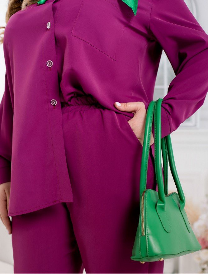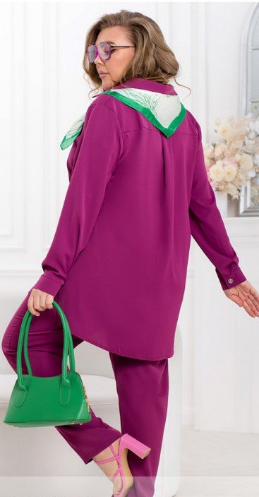 Наша новинка – легкий и стильный костюм-двойка, изготовленный из ткани облегченной костюмки Армани. Рубашка имеет удлиненный крой и отложной воротник, застегивается на пуговицах и дополнена карманом для дополнительного удобства. Рукава длинные дополнены манжетом, который застегивается на пуговицу. Брюки свободного кроя с высокой талией, придавая им уникальный комфорт.