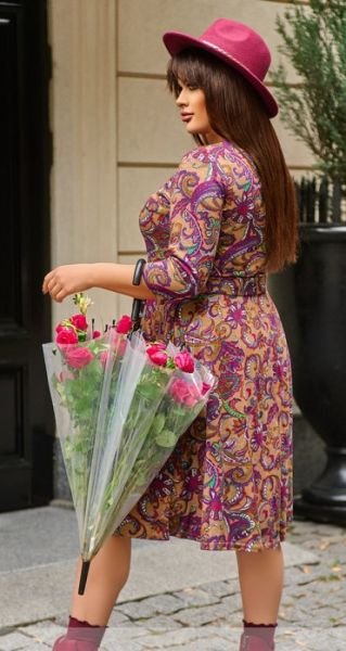 52 р-р: длина платья 106см, длина рукава от плечевого шва 45см, обхват рукава 38см, ОГ – 104см, ОТ –94см, OC –155см.