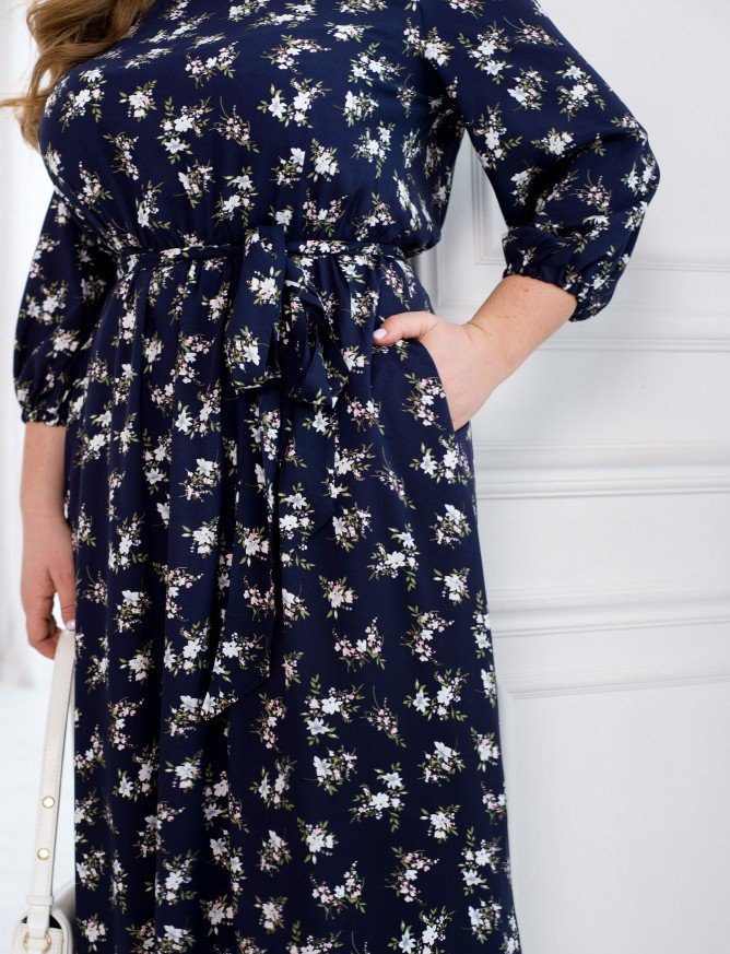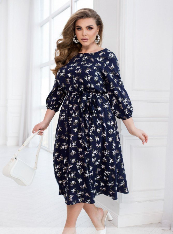 Это очаровательное женственное платье имеет изысканный дизайн и элегантный крой, идеально подходящий для различных мероприятий. Длина меди придает образу женственности и стиля. Рукава 7/8 с резинкой обеспечивают удобство при движении. Отрезная талия создает отличный акцент, особенно когда используется текстильный пояс, входящий в комплект. Это позволяет подчеркнуть и выделить талию, создавая изысканный силуэт. Вертикальные вытачки придают фигурность и структуру платья, подчеркивая женственные линии. Горловина с тонкой каймой завершает стиль платья, придавая образу завершенности и бережного прикосновения.