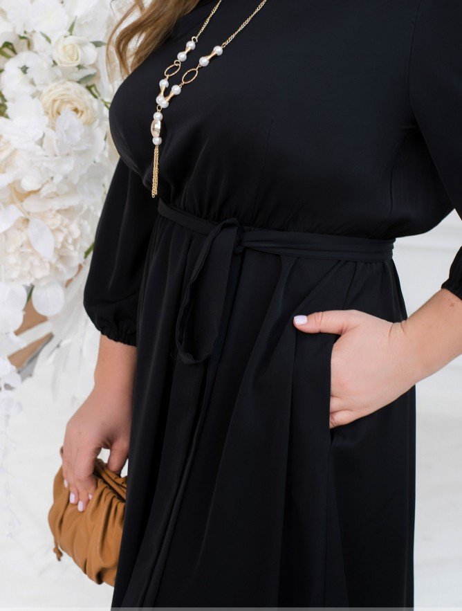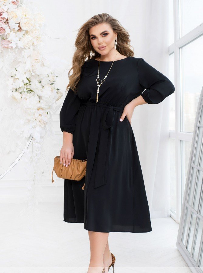 Это однотонное платье меди с круглой горловиной привлекает внимание своей простотой и элегантностью. Рукава 7/8 с резинкой придают удобство и придают оригинальность образу. Отрезная талия с резинкой, которую можно подчеркнуть входящим пояском, делает образ акцентированным и стильным. Это платье станет отличным выбором для разных мероприятий, где важно сочетать элегантность и комфорт.