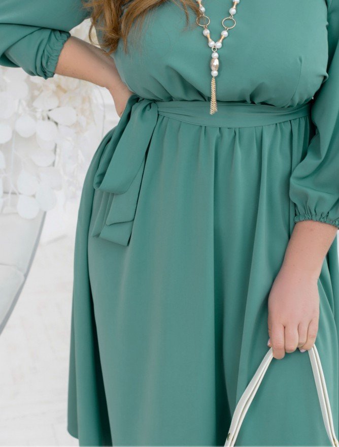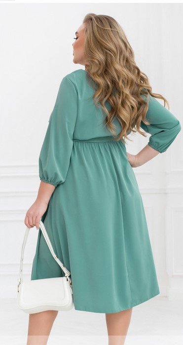 Это однотонное платье меди с круглой горловиной привлекает внимание своей простотой и элегантностью. Рукава 7/8 с резинкой придают удобство и придают оригинальность образу. Отрезная талия с резинкой, которую можно подчеркнуть входящим пояском, делает образ акцентированным и стильным. Это платье станет отличным выбором для разных мероприятий, где важно сочетать элегантность и комфорт.