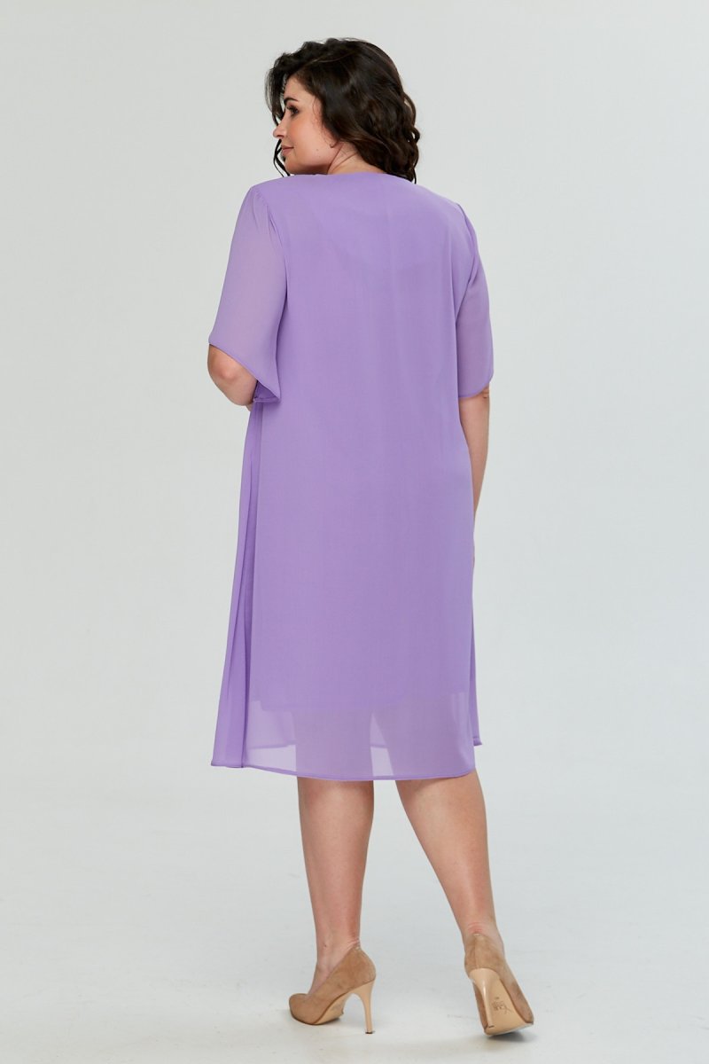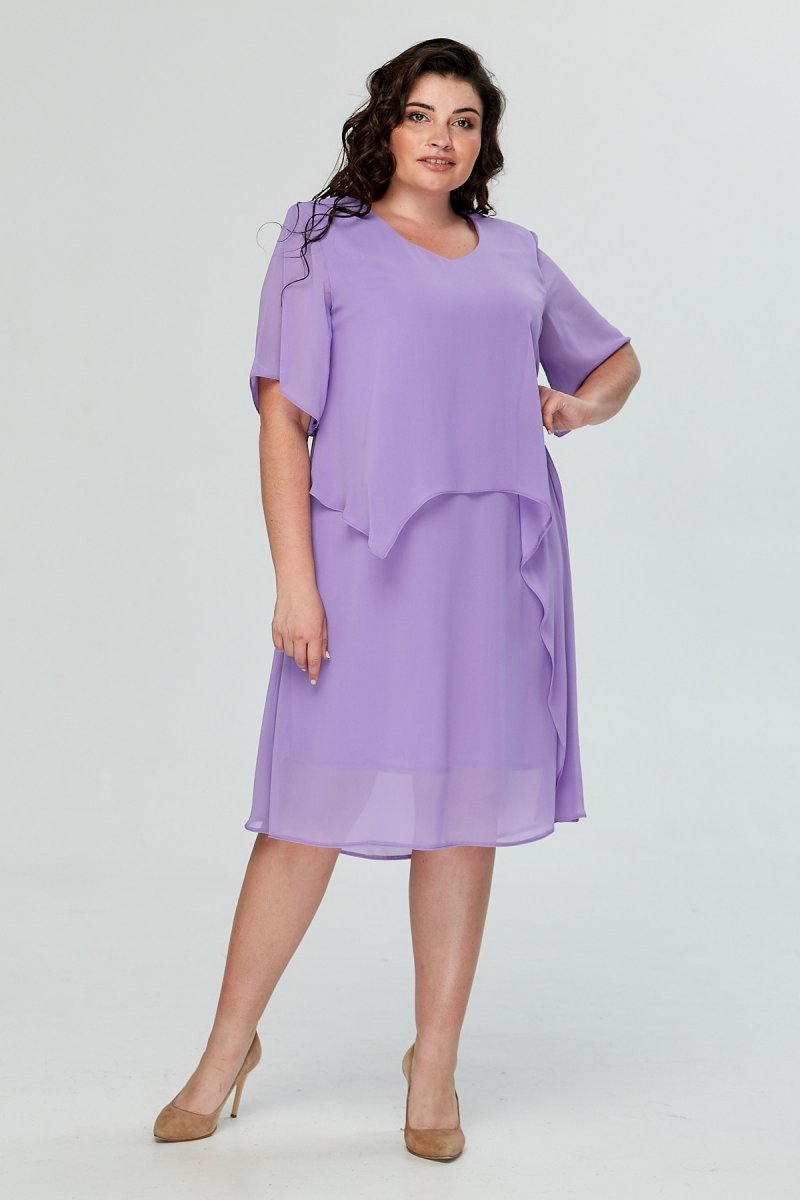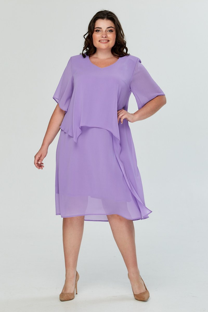 Элегантное шифоновое платье свободного силуэта. По переду – двухслойная, дополненная отлетной асимметричной деталью, что делает платье неповторимым. Рукава втачные, просторные из шифона. Изделие на трикотажной подкладке.