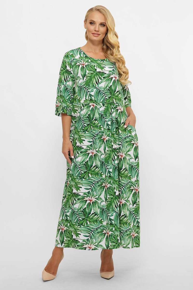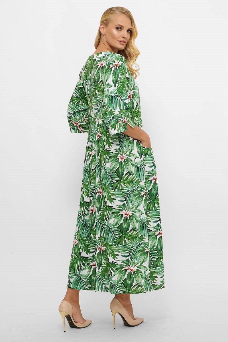 Летнее платье свободного силуэта в стиле бохо. Очень удобен и комфортен. Рукава чуть ниже локтя с фигурными манжетами, длина платья ниже середины икры. На завышенной талии небольшой сборник для юбки. По бокам полукруглые втачные карманы с декоративными складками.