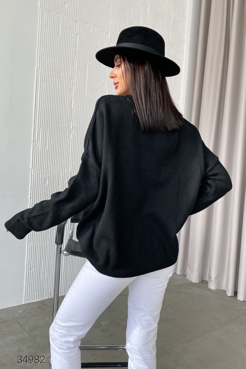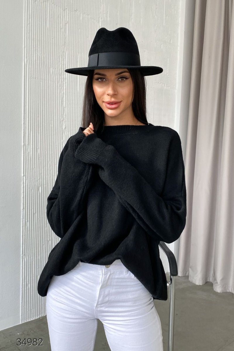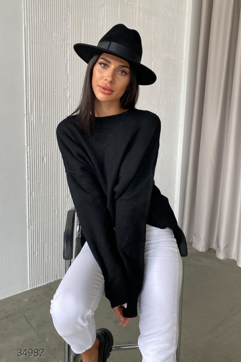 Свитер свободного кроя из качественной вязки, производства Турции. Круглый вырез, манжеты и нижняя кромка в рубчик, заниженная линия плеч. Состав ткани: 80% – акрил, 13% – полиэстер, 7% – эластан. Размер универсальный, подходит на 42-48.
