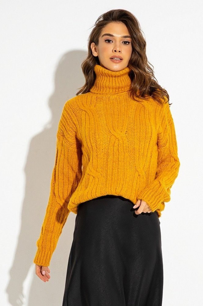Базовый свитер крупной ажурной вязки с высоким воротом в стиле "oversize". Модель отлично сохраняет тепло и дарит ощущение уюта в прохладную погоду. Произведено в Турции.