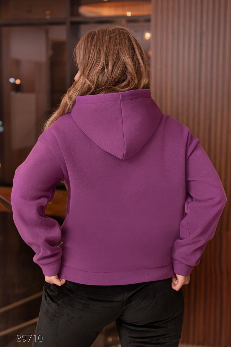 Худи с объёмным капюшоном из качественного трикотажа трёхнити с начёсом. Капюшон с затягивающимся шнурком, люверсы, наконечники. Заниженная линия плеч, накладной карман, эластичные манжеты и нижняя кромка.